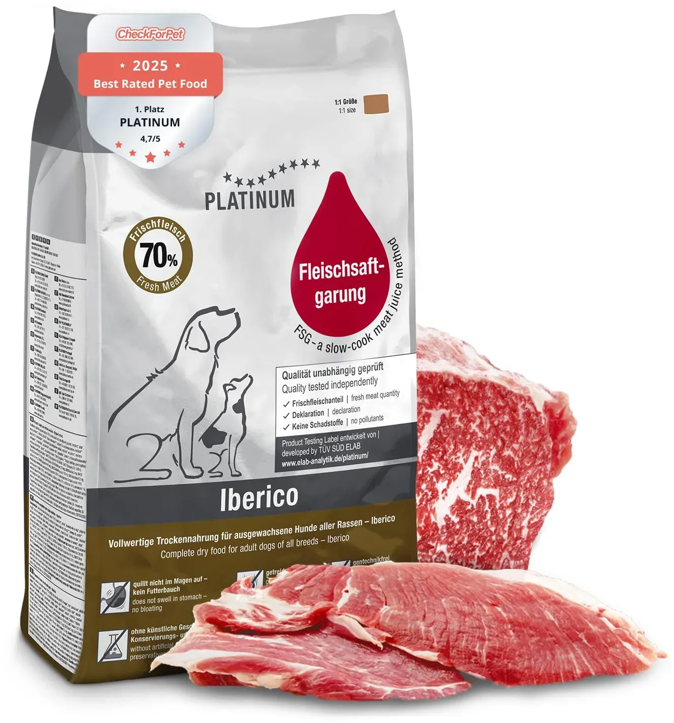 Auf Lager Versand durch AmazonPLATINUM - Hundenahrung Adult Iberico aus Fleischsaftgarung - 5kg Hundefutter trocken aus Iberischem Schweinefleisch - besonders schmackhaftes Hundetrockenfutter für alle Hunderassen - in DE geprüft