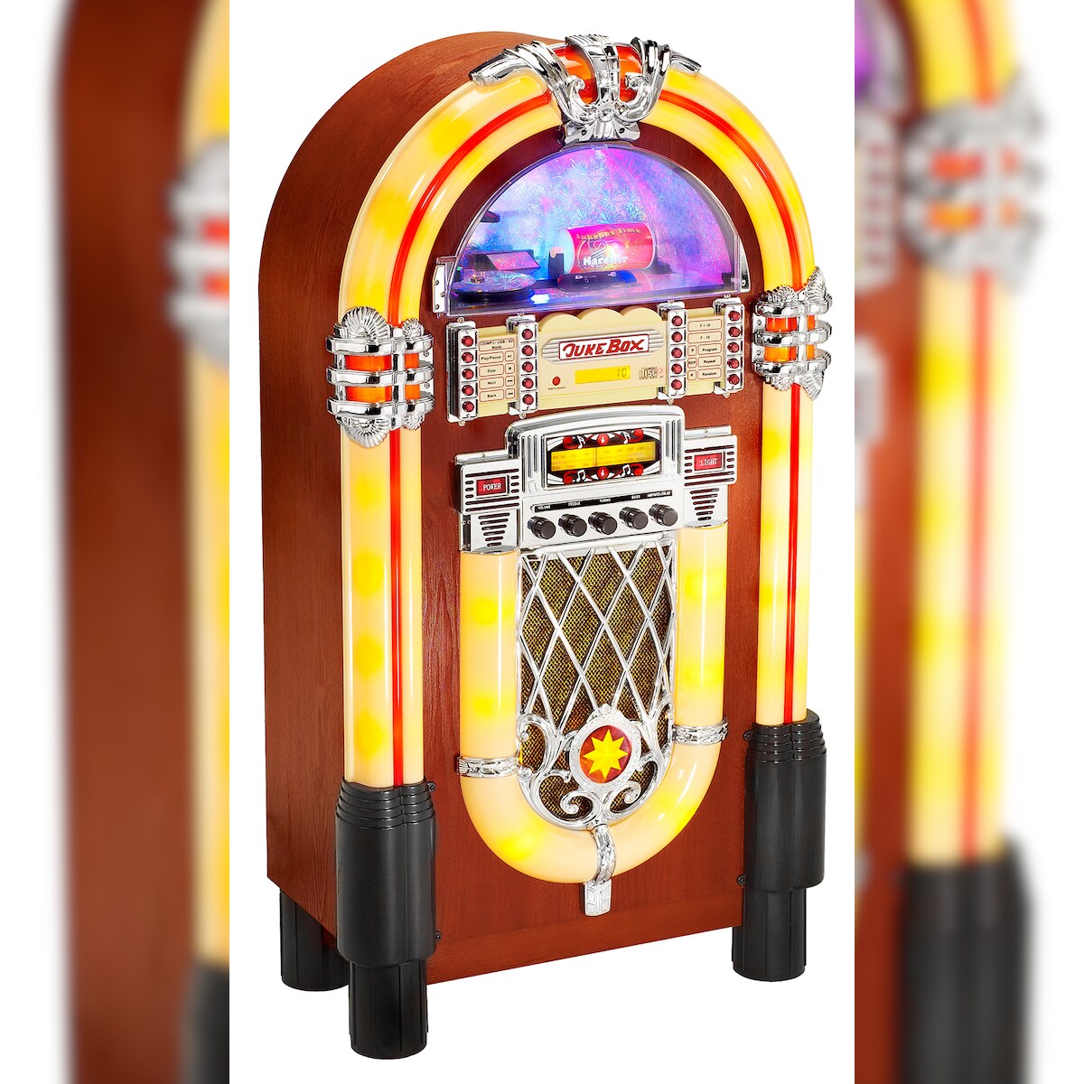 Plattenspieler Möbel Räume Wohnzimmer Stereoanlagen & Radios Plattenspieler - EAN:1200130006593 - Ausstattung: Antrieb: Riemenantrieb, Funktionen: Phono-Verstärker, Abdeckhaube: aufklappbar, Abtastnadel: Magnet-Nadel, Audio- und Videowiedergabe: Abspielgeschwindigkeit: 33/45, Netzwerk- und Verbindungsarten: Netzwerkstandard: Bluetooth, Anschlüsse: Anzahl Analog-Audio-Ausgänge: 2, Anzahl Audio-Ausgänge Cinch: 2, Material: Material Plattenteller: Aluminium, Stromversorgung: Art Stromversorgung: externes Netzteil, Typ Netzstecker: Euroflachstecker (Typ C-CEE 7/16), Maße & Gewicht: Höhe: 24,5 cm, Breite: 45,2 cm, Tiefe: 53,8 cm, Gewicht: 8,5 kg, Lieferung & Montage: Lieferumfang: JBL Spinner BT Turntable, Plattenteller, Antriebsriemen, Aluminium-Plattenteller, Filzmatte, Headshell und Tonabnehmer, 45 rpm Einzeladapter, Netzgerät, Farbe: Farbbezeichnung: Schwarz, Technische Daten: WEEE-Reg.-Nr. DE: 90.766.592 - gefunden von Kelkoo Dieser Kärcher Jukebox Plattenspieler bietet ein einzigartiges Retro-Design und ist ideal für Liebhaber des Vintage-Looks. ![]() Kärcher Karcher JB 6604 Jukebox (Retro Design, Schallplattenspieler)