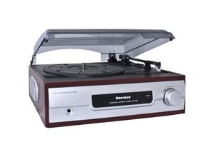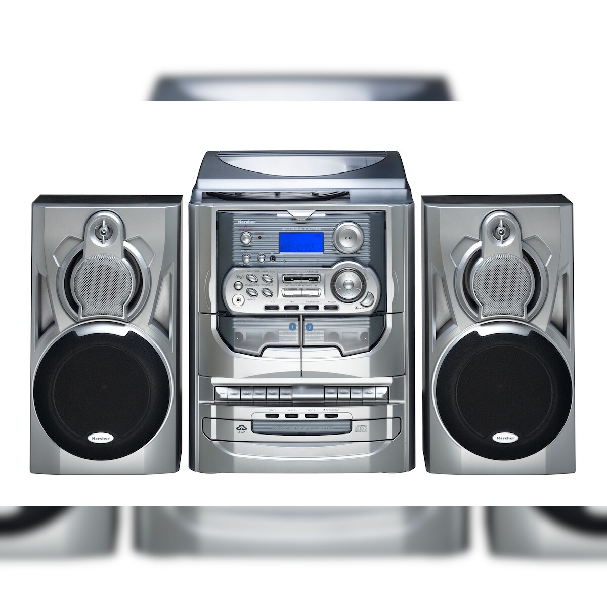 Plattenspieler Lifestyle Technik Audio Hifi Hifi-Komponenten - - Ausstattung: Antrieb: Riemenantrieb, Funktionen: Kopfhöreranschluss, Abdeckhaube: aufklappbar, Abtastnadel: Saphirnadel, Lademechanismus Datenträger: Fach, Audio- und Videowiedergabe: Gesamtleistung (RMS): 5 W, Anzahl Lautsprecher: 2, Lautsprecherkanäle: 2.0, Wiedergabeformate: CD-DA, MP3, WMA, Klangeffekte: Stereo, Abspielgeschwindigkeit: 33/45/78, Datenträgerformate integrierter Medienplayer: CD-R, CD-RW, Radiofunktionen: FM-Tuner, Netzwerk- und Verbindungsarten: Netzwerkstandard: Bluetooth, Bluetooth-Version: 2.0, Anschlüsse: Typ Audio-Anschluss: AUX, Typ Cardreader: SD, Anzahl Audio-Ausgänge 3,5 mm Klinke: 1, Anzahl USB-Anschlüsse: 1, Anzahl AUX-Anschlüsse: 1, Material: Material Gehäuse: Holz, Stromversorgung: Art Stromversorgung: internes Netzteil, Maße Gewicht: Höhe: 23,5 cm, Breite: 33,5 cm, Tiefe: 44,5 cm, Gewicht: 7 kg, Lieferung Montage: Lieferumfang: Netzteil, Gebrauchsanleitung, 45 U/Min. Single-Puck-Adapter, Farbe: Farbbezeichnung: schwarz, Hinweise: Sprachen Bedienungs-/Aufbauanleitung: Deutsch (DE), Technische Daten: WEEE-Reg.-Nr. DE: 94.626.913 - Versandkostenfrei: false - Sale: true - Lieferzeit: 1 Woche - Sofort verfügbar: true - Größe: one size - Hersteller-Farbe: schwarz - Farbe: Schwarz - - Versand mit Hermes - Zahlungsoptionen: Paypal, Kreditkarte, Rechnung, Lastschrift, Sofortüberweisung, Ratenkauf - bei Baur Versand - gefunden von shopping24 Die Kärcher KA 5300 Kompaktanlage ist eine vielseitige Option mit CD-Wechsler, Kassettendeck und Radio, perfekt für alle, die mehr als nur einen Plattenspieler suchen. ![]() Kärcher Karcher KA 5300 Kompaktanlage (3-fach CD-Wechsler, Schallplattenspieler, Kassettendeck, Radio, Fernbedienung) silber
