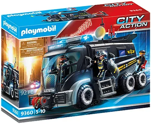 6 Händlerangebote bei billiger.de - Kategorie: Playmobil - Playmobil - Mit abnehmbarem Dach und Platz für bis zu 4 Figuren. Das Licht- und Soundmodul benötigt eine 1,5-V-Micro-Batterie (nicht enthalten). Maße: 33,5 x 15,5 x 15 cm (LxTxH). - GTIN:4008789093608 Dieses Angebot ist eine gute Wahl, da es den SEK-Truck mit Licht- und Soundeffekten zu einem attraktiven Preis anbietet. ![]() ![]() PLAYMOBIL City Action 9360 SEK-Truck mit Licht- und Soundeffekten, Ab 5 Jahren