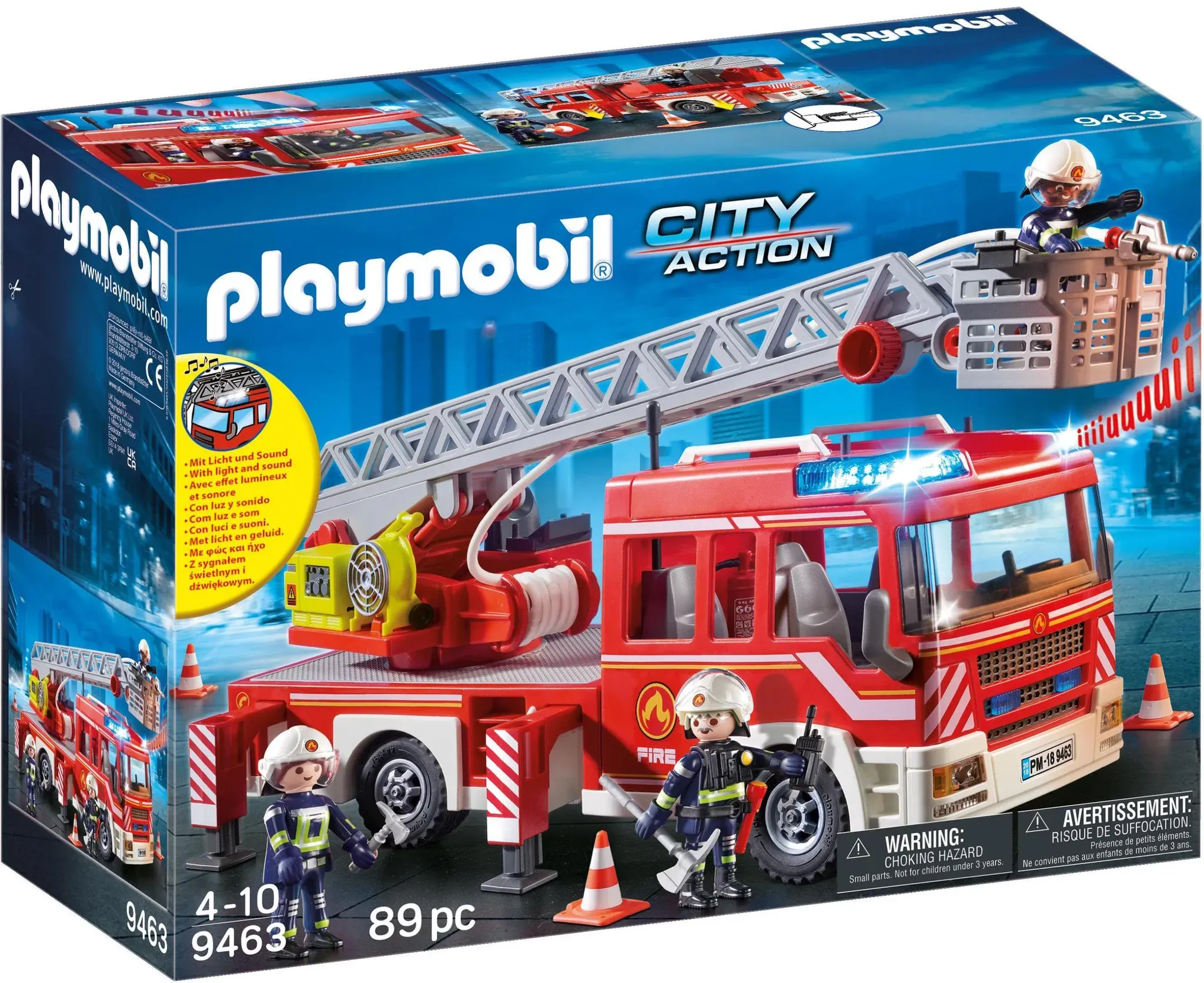 Auf Lager Versand durch AmazonPLAYMOBIL City Action 9463 Feuerwehr-Leiterfahrzeug mit Licht und Sound, Ab 5 Jahren