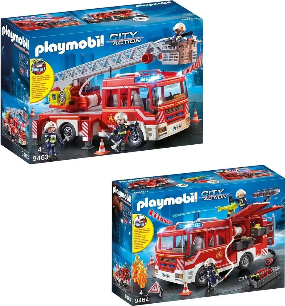 Kategorie: Playmobil - Playmobil - GTIN:4008789094636 - Mit Blaulicht, Sirene und hohem Tempo fahren die Playmobil-Feuerwehrleute mit dem Feuerwehr-Leiterfahrzeug zum Einsatzort. Jetzt muss es schnell gehen. Zwei Stockwerke des Hauses stehen schon in Flammen. Doch die Playmobil-Feuerwehrexperten sind bestens ausgebildet. Innerhalb von Sekunden haben sie die Gefahrenstelle abgesichert, die Leiter ausgefahren und die Löschschläuche einsatzbereit gemacht. Jetzt heisst es Wasser marsch. Zum Glück ist der Brand nach kurzer Zeit unter Kontrolle gebracht. Lautstark: Das Feuerwehr-Leiterfahrzeug ist mit coolen Licht- und Soundeffekten ausgestattet. - 80,75 Euro bei Galaxus.de - gefunden von billiger.de Dieses Angebot ist interessant, da es das Playmobil City Action Feuerwehr-Leiterfahrzeug 9463 zusammen mit dem Feuerwehr-Rüstfahrzeug 9464 im Set anbietet. ![]() ![]() Playmobil City Action Feuerwehr-Leiterfahrzeug 9463 + Feuerwehr-Rüstfahrzeug 9464