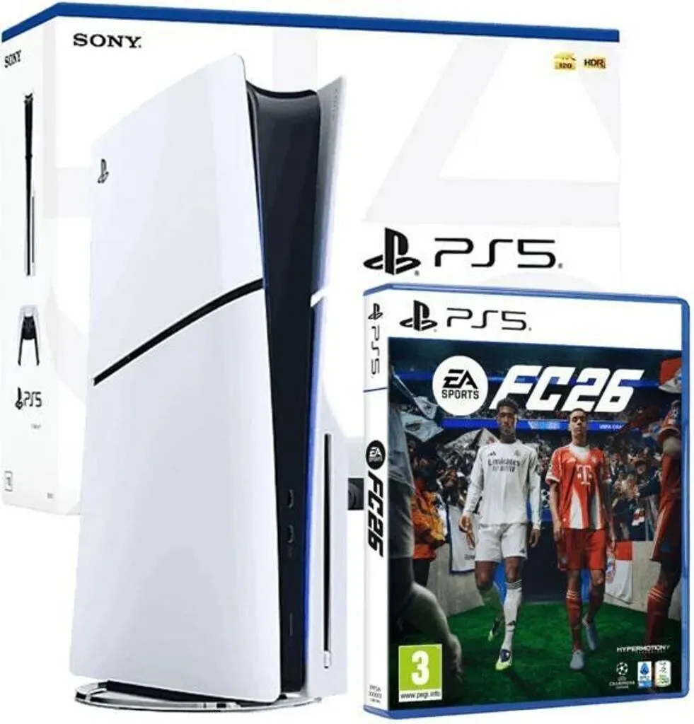 Sony - EAN: 0711719021247 - Die PS5-Konsole eröffnet Gaming-Möglichkeiten. Mit der PS5 erhalten Spieler die gleiche leistungsstarke Gaming-Technologie in einem schlanken und kompakten Konsolendesign. Freue dich auf blitzschnelles Laden mit einer ultraschnellen SSD, eine realistischere Spielerfahrung durch haptisches Feedback, adaptive Trigger-Tasten und 3D-Audio. Ein Konto für das PlayStation Network ist erforderlich. Hinweis: Standfuss separat erhältlich. - bei galaxus.de - aus Yadore Produktdaten Dieses Bundle von billiger.de enthält die PS5 Slim Disc Edition und das Spiel EA SPORTS FC26, was einen guten Start in die Gaming-Welt ermöglicht. ![]() ![]() Sony PlayStation 5 Slim Disc Edition EA SPORTS FC26 Bundle