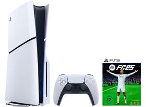 Zustand: Neu - Konsolen PlayStation 5 Konsolen - Playstation Sony Playstation - 1000042051 - EAN: 0711719581116 - Die PS5-Konsole eröffnet völlig neue Gaming-Möglichkeiten, die du so nie erwartet hättest. Dieses Bundle enthält zwei DualSense Wireless-Controller. Neues, schlankeres Design: Mit der PS5 erhalten Spieler die gleiche leistungsstarke Gaming-Technologie in einem schlanken und kompakten Konsolendesign. Freue dich auf blitzschnelles Laden mit einer ultraschnellen SSD, eine realistischere Spielerfahrung durch haptisches Feedback, adaptive Trigger-Tasten und 3D-Audio sowie eine völlig neue Generation unglaublicher PlayStation-Spiele. 1TB Speicherplatz: Halte deine Lieblingsspiele bereit und warte darauf, mit dem eingebauten 1TB SSD-Speicher sofort loszuspielen. Einzigartige Spiele: Lass dich von der unglaublichen Grafik in den Bann ziehen und erlebe die neuen Funktionen der PS5. - 15 Händler im amazon.de Marketplace ![]() PLAYSTATION 5 Konsolen-Set 'Disk Edition (Slim) inkl. EA SPORTS FC 25', schwarz-weiß (weiß, schwarz), B:9,6cm H:35,8cm T:21,6cm, Spielekonsolen, Topseller