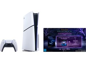 Technik Lifestyle - - Vertikaler Standfuß separat erhältlich., Farbe: Farbbezeichnung: weiß/schwarz, Bestandteile: Anzahl Controller im Lieferumfang: 1, Spiele im Lieferumfang: Death Stranding 2: On the Beach, Controller im Lieferumfang: DualSense-Controller, Datenträger Spiele: Blu-ray-Disc, Downloadplattform Spiele: PlayStation Network, Lieferumfang: Death Stranding 2: On the Beach, DualSense-Controller, 2 horizontale Standfüße, Druckerzeugnisse, HDMI-Kabel, Netzteil, USB-Kabel, Audio- und Videowiedergabe: Laufwerk: 4K-Blu-ray, Unterstützte Formate: Blu-ray, PlayStation 5 Datenträger (Ultra HD Blu-ray), PlayStation 5 Spiele, Playstation 4 Spiele, Unterstützte Video-Auflösungen: 4K, Full HD, Unterstützte Medien: Filme, Musik, Spiele, Anschlüsse: Typ HDMI-Anschluss: HDMI 2.1, Anzahl HDMI-Anschlüsse: 1, Typ USB-Anschluss: USB-A, USB-C, Anzahl USB-Anschlüsse: 4, Anzahl USB-C-Anschlüsse: 2, Typ LAN-Anschluss: RJ45-Ethernet, Netzwerk- und Verbindungsarten: Netzwerkstandard: Bluetooth, LAN, WLAN, Wi-Fi-Standard: a, b, g, n, ac, ax, Bluetooth-Version: 5.1, Speicher: Speichertyp Festplatte: SSD, Speicherkapazität Arbeitsspeicher (RAM): 16, Speicherkapazität Festplatte in GB: 1.000 GB, Speicherkapazität Festplatte in TB: 1 TB, Prozessor: Hersteller Prozessor: AMD, Serie Prozessor: Zen 2, Nummer Prozessor: Zen 2, Bauart Prozessor: Okta-Core, Anzahl Prozessorkerne: 8, Grafikkarte: Hersteller Grafikkarte: AMD, Serie Grafikkarte: RDNA 2, Altersfreigabe (USK): USK-Freigabe: ab n, ... Ein Premium-Bundle mit der PS5 Disk Edition (Slim) und der "Elden Ring Nightreign Seekers Edition", perfekt für Fans von anspruchsvollen Action-RPGs. ![]() PLAYSTATION 5 Konsolen-Set 'PS5 Disk Edition (Slim) + Elden Ring Nightreign Seekers Edition', schwarz-weiß (weiß, schwarz), B:21,6cm H:35,8cm T:9,6cm, Spielekonsolen