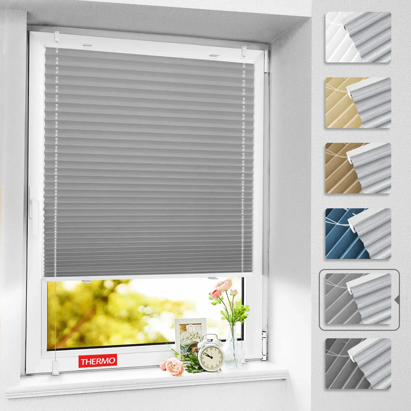 Kategorie: Rollos - Sekey - GTIN:4260707741323 - Plissee Ohne Bohren: Mit den vier mitgelieferten verstellbaren Klemmhalterungen kann die Faltenjalousie schnell und einfach am Fenster befestigt werden - ohne Schrauben und Bohren.Einfaches Herauf & Herabziehen:Das Plissee lässt sich flexibel von oben oder von unten durch die Griffe steuern, um die Lichtdurchlässigkeit wie gewünscht anzupassen.Hochwertige Materialien: 100% Polyester. Sicher, ungiftig, atmungsaktiv und umweltfreundlich. Kein Vergilben oder Reißen durch Sonneneinstrahlung.Sonnen- & UV-Schutz: Das Plissee besteht aus Polyester mit Aluminiumschienen, bietet Sonnenschutz und kann den größten Teil der UV-Strahlung blockieren.Breite Anwendung: Schlafzimmer, Wohnzimmer, Küche, Kinderzimmer, Büro oder jeden Ort, an dem Schatten und UV-Schutz gewünscht sind. Hinweise:Bemessung: Bestellbreite = Glasscheibe inklusive Gummidichtung + 2-4cm;Auftragshöhe = Die Höhe Ihres gesamten Fensters einschließlich des Fensterrahmens Beispiel: Für das 51 cm breite Fensterglas werden 51 cm + 2 cm + 2 cm = 55 cm empfohlen.Wenn der Faltenstoff längere Zeit nicht geschlossen wird, kann er glatt werden (Schließen Sie die Falten einige Stunden lang, um die ursprünglichen Falten wiederzugewinnen).Bitte messen Sie die Höhe des gesamten Fensters (einschließlich des Fensterrahmens), damit das gesamte Fenster abgedeckt werden kann.Bitte lassen Sie die Falten im zugewiesenen Zustand, bevor Sie die Aufhängekabel in die Klemmen einführen und ... Dieses Angebot ist mit 13,49 Euro eine sehr preiswerte Option für ein Klemmfix-Plissee, das ohne Bohren montiert werden kann. ![]() ![]() Plissee Klemmfix - ohne Bohren eBay Fenster Tür Faltstore Plissee Rollo Faltrollo