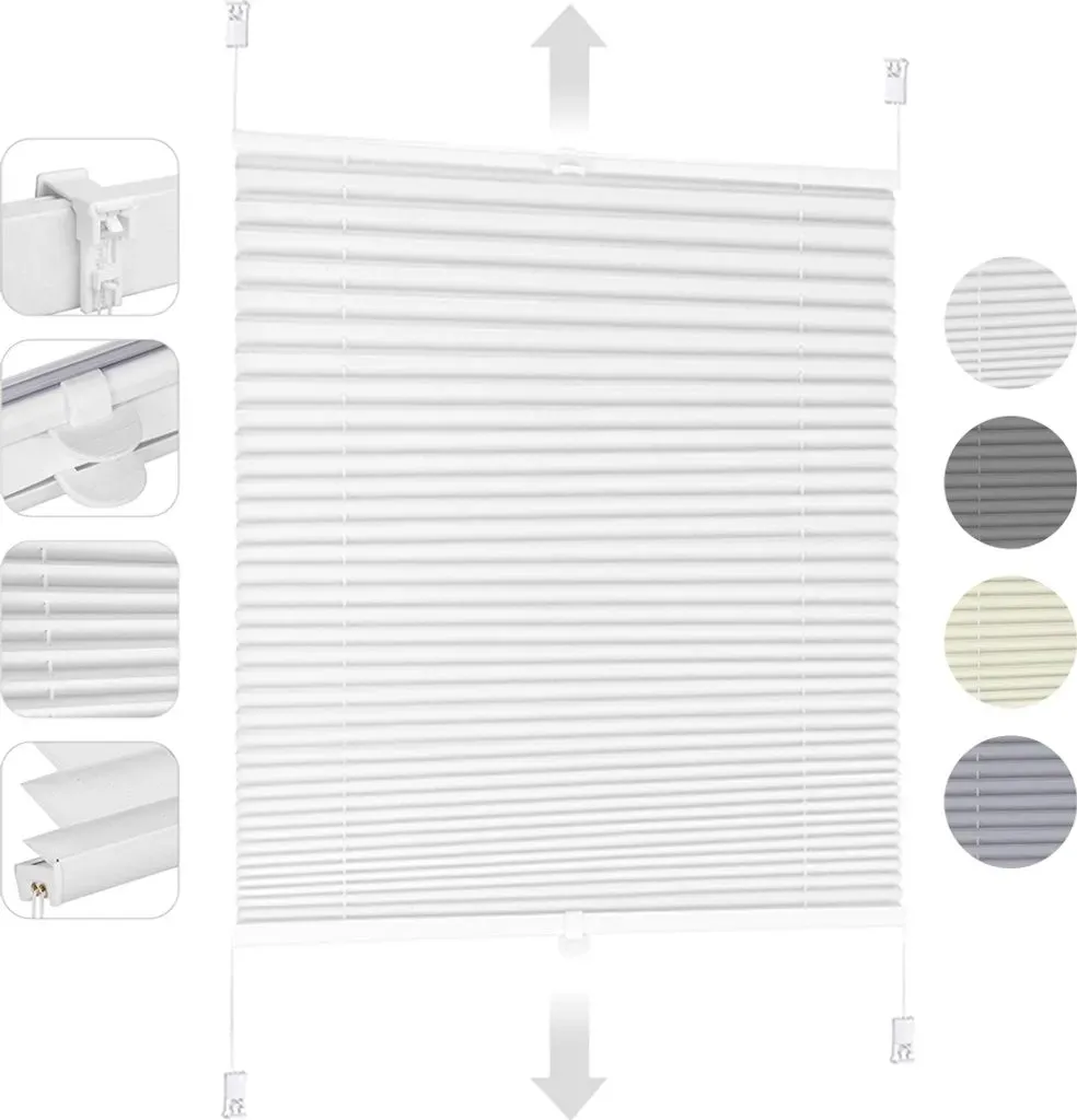 keine Angabe 6 Werktage in_stockPlissee ohne Bohren Verdunkelung, Fenster Plissee Klemmfix Jalousie, Weiß, 50x150cm - Sekey