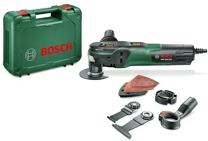 15 Händlerangebote bei billiger.de - Kategorie: Multifunktionswerkzeuge - Bosch - Multifunktionswerkzeug PMF 350 CES mit StarLock/StarLock Plus Werkzeugaufnahme und Constant Electronic für maximale Leistung auch unter Last. Sekundenschneller Zubehörwechsel dank des innovativen AutoClic-System, für den schlüssellosen Zubehörwechsel in nur 3 Sekunden. - GTIN:3165140828567 Dieses Angebot ist empfehlenswert, da es das Multifunktionswerkzeug inklusive Koffer und einem praktischen Fliesen-Set für 137.66 Euro enthält. ![]() ![]()