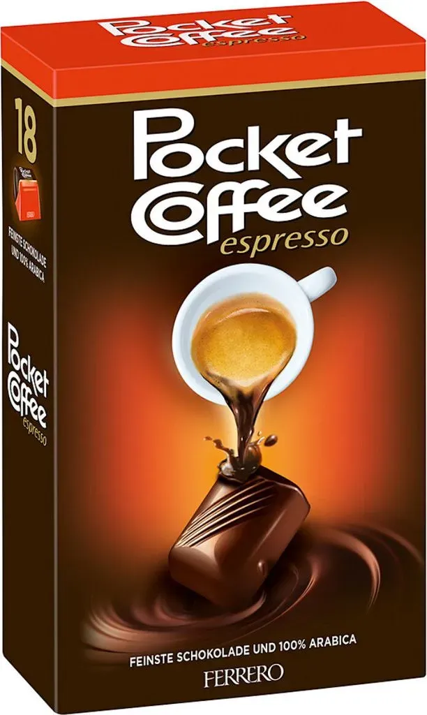 Zustand: Neu - 26,27 € / kg - Riegel Schokoladenriegel - Pocket Coffee Ferrero - 1418 - EAN: 9999968311079 EAN: 4008400141824 - Jede Packung enthält 18 einzeln verpackte Pralinen à 12,4 g Die Vorratsbox, einzeln verpackt perfekt Portionierbar Ideal für zuhause oder für's Büro Echter, flüssiger, italienischer Espresso, umhüllt von knackiger, feiner Schokolade - 8 Händler im amazon.de Marketplace Eine einzelne Packung mit 18 Pralinen, ideal zum Probieren oder als kleine Süßigkeit. ![]() ![]() Pocket Coffee - 18 Pralinen eBay knackig mit flüssigem Espresso Kern 225g