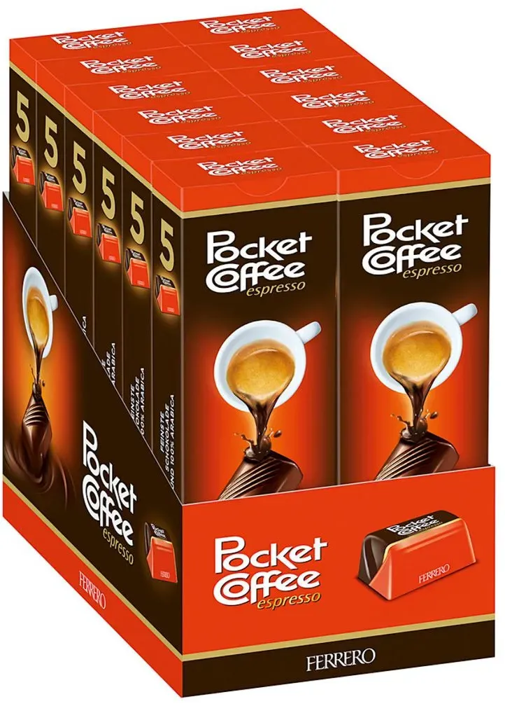 Zustand: Neu - 34,47 € / kg - Gemahlener Kaffee - Ferrero - II-LTG3-WOOE-CA - EAN: 4008400141510 - Pocket Coffee Ferrero, packs of 12 to 5 pieces box of 60 pieces CHOCOLATE CANDY Ferrero - Verkäufer: Pere's Candy Shop im amazon.de Marketplace Eine Großpackung mit 6x 225g Ferrero Pocket Coffee, ideal für Vielgenießer. ![]() ![]() Ferrero Pocket Coffee (6x 225g Packung)