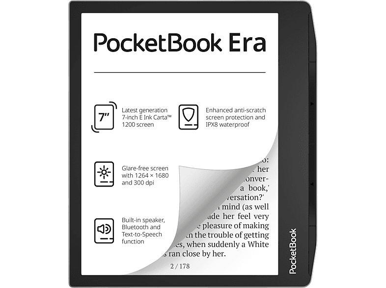 Kategorie: E-Book-Reader - Pocketbook - GTIN:4029164130664 - Der PocketBook Era ist dein kompakter Allrounder, wenn es ums Lesen geht. Auf dem 17,8 cm (7 Zoll) großen E-Ink Carta 1200 Bildschirm mit SMARTlight tauchst du entspannt in neue Lesewelten ein. Mit dem integrierten Lautsprecher hörst du deine Hörbücher, auch wenn du mal keine Kopfhörer dabeihast. Der E-Reader ist wassergeschützt und verfügt über einen verbesserten Kratzschutz. Highlights: 17,8 cm (7 Zoll) E-Ink Carta 1200-Touchscreen SMARTlight Hintergrundbeleuchtung Für Links- sowie Rechtshänder geeignet, dank eingebauterm Lagesensor Blendfreier FHD-Bildschirm mit 1264 x 1680 Pixeln Wasserschutz nach IPX8-Standard Eingebauter Lautsprecher und Bluetooth zur Wiedergabe von bspw. Hörbüchern Direkter Zugang zur Onleihe der öffentlichen Bibliotheken über die integrierte Onleihe-App Dual-Core-Prozessor für schnelle App-Bedienung und flüssiges Umblättern Vorinstallierte Wörterbücher in 22 Sprachkombinationen - 209,99 Euro bei Media Markt Online Shop - gefunden von billiger.de Dieses Angebot von Media Markt ist eine weitere gute Wahl für das PocketBook Era 16 GB Stardust Silver. ![]() POCKETBOOK Era 16 GB Stardust Silver 16 GB eReader Stardust Silver