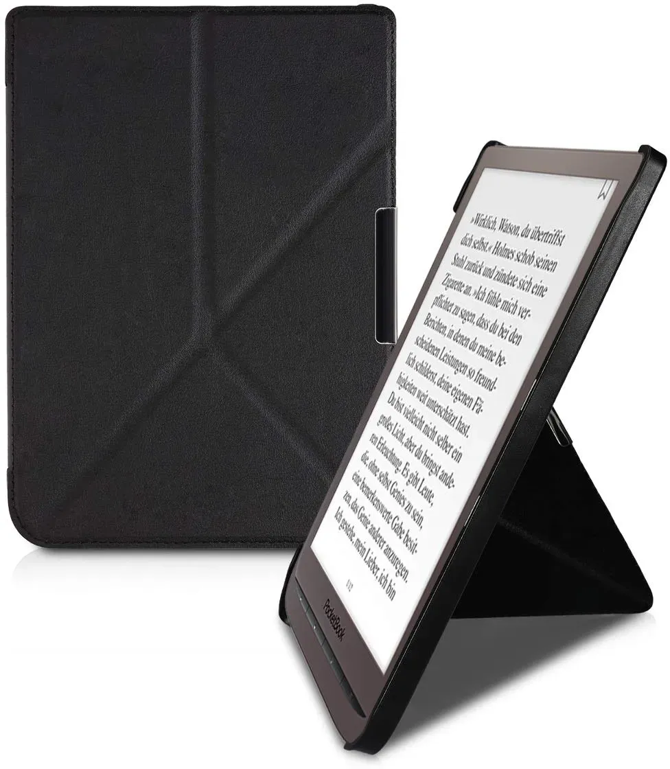 Zustand: Neu - Hüllen Hüllen für Tablets - kwmobile KW-Commerce - 44761.01_m000667 - EAN: 4057665357822 - ORIGAMI STAND: Die Kunstleder Klapphülle in Schwarz ist klug konzipiert. Verschiedene Falze erlauben es, die Tasche wie ein Origami zu falten und so einen elegant anmutenden Aufstellwinkel für Deinen e Reader zu schaffen. SMART FIT: Mit dieser Hülle ist Dein Gerät nicht nur von zwei Seiten geschützt. Alle Bedienelemente und Anschlüsse bleiben erreichbar. KOMPATIBEL MIT: Pocketbook InkPad 3 / 3 Pro / Color / Vivlio InkPad 3 STARK UND STABIL: Das Flip Schutzcover mit Ständer ist belastbar und unempfindlich im täglichen Gebrauch. Alle Knöpfe und Anschlüsse bleiben im eBook Reader Schutzcase gut bedienbar. MAGNETVERSCHLUSS: Dank des Verschlusses lässt sich die Abdeckung sicher schließen und öffnen. - Verkäufer: SX-Commerce im amazon.de Marketplace ![]() ![]() kwmobile Hülle kompatibel mit Pocketbook InkPad 3/3 Pro/Color/Vivlio InkPad 3 Hülle - Kunstleder Case - eReader Schutzhülle - Cover Schwarz