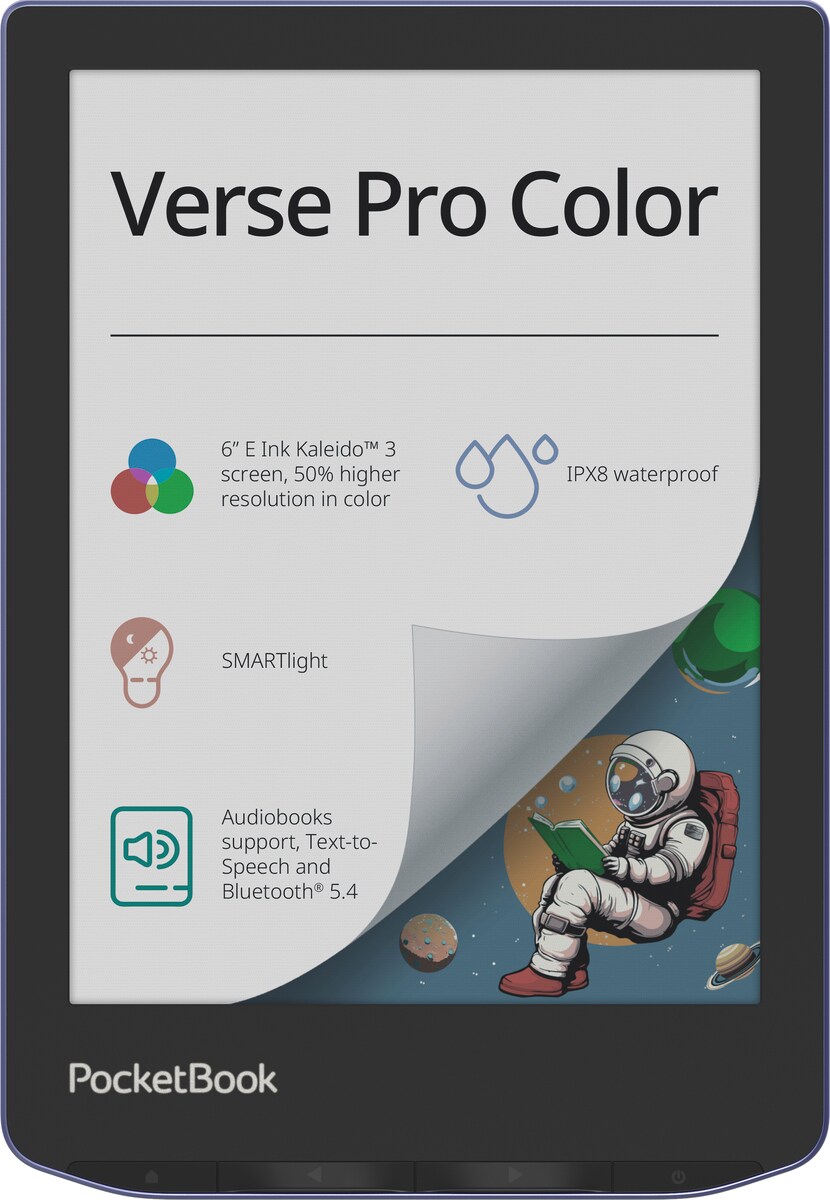 Kategorie: E-Book-Reader - Pocketbook - GTIN:7640152097140 - Der PocketBook Verse Pro Color bietet dank des neuen E Ink Kaleido 3-Bildschirms eine verbesserte Auflösung für detailreiches Lesen in Farbe mit einer Schwarz-Weiß-Auflösung von 1072 x 1448 und einer Farbauflösung von 536 x 724 Pixeln. Der kompakte, ergonomische E-Reader passt in jede Tasche und bietet eine Akkulaufzeit von bis zu einem Monat. Er unterstützt sechs Audioformate und verfügt über Bluetooth 5.4, wodurch kabellose Verbindungen möglich sind. Die Text-to-Speech-Funktion verwandelt Textdateien in Hörbücher mit verschiedenen Stimmen in 26 Sprachen, ideal für unterwegs, beim Autofahren oder Kochen. Highlights: Reflexionsfreier 6 Zoll (15,24 cm) großer E Ink Kaleido 3 Farbbildschirm zur Darstellung von 4.096 Farben SMARTlight zur individuellen Anpassung der Displaybeleuchtung Unterstützung von sechs Audioformaten für Hörbücher und Musik Leistungsstarker Quad-Core-Prozessor für flüssige Bedienbarkeit IPX8-Wasserschutz für praktisches Lesen überall Dualband-Wi-Fi Unterstützung von 25 Formaten einschließlich CBR- und CBZ-Comicformate Nutzung der Kindle-Formate AZW bzw. AZW3 möglich (gilt aber nicht für kopiergeschützte Inhalte) Integrierte Onleihe-App PocketBook Cloud & Dropbox für schnelles Einkaufen, Bibliotheksverwaltung und Synchronisation mit anderen Geräten Eine große Anzahl an Wörterbüchern mit elf vorinstallierten Sprachkombinationen und 42 Kombinationen, die kostenlos heruntergeladen werden können - ... Electronis.de bietet das PocketBook Verse Pro Color mit 16GB/1GB RAM in Stormy Sea für 164.98 Euro an, eine gute Speicherkonfiguration. ![]() ![]() PocketBook Verse Pro Color 16GB/1GB RAM stormy-sea