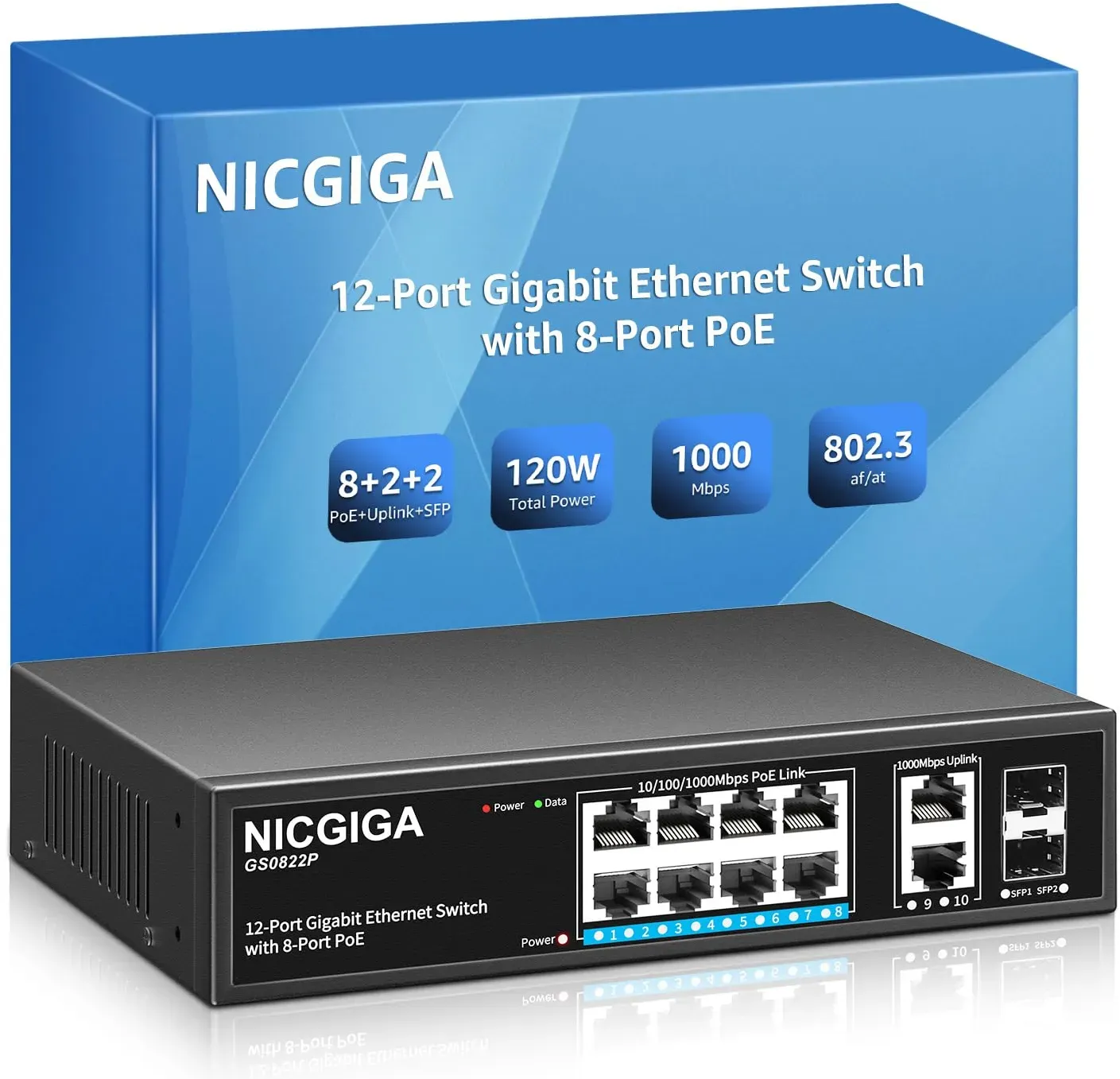Zustand: Gebraucht - Top Brands Tech Networking - TP-Link - TL-SG1210P - EAN: 0767531820056 EAN: 6935364052980 - TL-SG1210P - 1 Händler im amazon.de Marketplace Dieser NICGIGA Gigabit PoE Switch bietet mit 89.58 Euro eine gute Ausstattung mit 8 PoE+-Ports, Gigabit-Uplink und SFP-Ports. ![]() ![]() 8 Port Gigabit PoE Switch Unmanaged with 8 Port IEEE802.3af/at PoE+@120W, 2 x 1000Mbps Uplink + 2 x 1G SFP, NICGIGA 12 Port Network Power Over Ethernet Switch, Desktop/Wall-Mount.