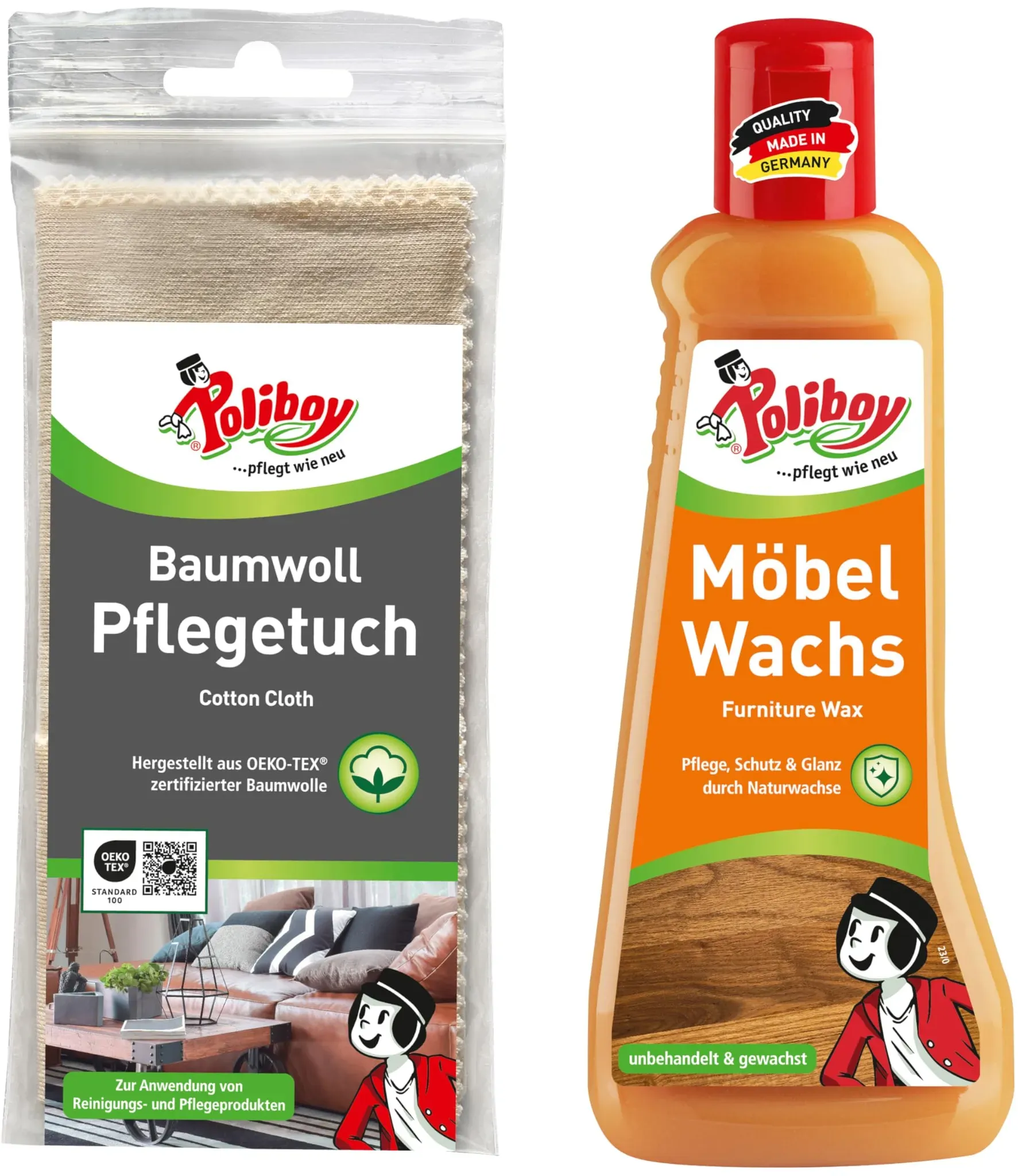 Zustand: Neu - 49,95 € / l - Möbel & Holz-Politur - Poliboy ... pflegt wie neu - 99A9901 - EAN: 4016100910992 - Möbelpflege für alle Holzarten: Das Möbelwachs ist für unbehandelte, gelaugte und gewachste Holzmöbel im Innenbereich geeignet, wie zum Beispiel Tische, Dekoration und Regale. Effektives Holzschutzmittel: Schützt mit pflanzlichem Bienenwachs und Orangenwachs gegen Feuchtigkeit und Austrocknen sowie Flecken. Das Wachs wirkt wie ein Imprägniermittel und ist farbneutral im Auftrag. Optische Auffrischung: Das Möbelwachs veredelt die Holzoberflächen mit einem seidenmatten Glanz und lässt sich durch seine flüssige Konsistenz leicht auftragen. Für Sensible Bereiche: Das Holzpflegemittel ist ideal für Möbel im Schlafzimmer oder Kinderzimmer für Spielzeug und Einrichtung. Baumwoll Pflegetuch: Hochwertiges Poliertuch zur Anwendung von Reinigungsmitteln und Pflegemitteln auf Holz, Kunststoff, Hochglanz, Metall, Glas und Displays. Es ist geeignet zum Auftragen, Reinigen und Polieren. Größe: 25 x 33 cm. Kratzarm, fusselfrei und waschbar bis zu 60 Grad. - Verkäufer: Kaladia - schneller Versand - auch an Packstationen im amazon.de Marketplace Dieses Angebot beinhaltet ein flüssiges Holzwachs zur Möbelpflege und Imprägnierung, inklusive Baumwolltuch. ![]() ![]() polyboy POLIBOY Möbel Wachs - Flüssiges Holzwachs zur Möbelpflege und Imprägnierung von Holzmöbeln - Mit pflanzlichen Wachsen - 1x 200 ml - inkl. Baumwolltuch zur Anwendung - Made in Germany