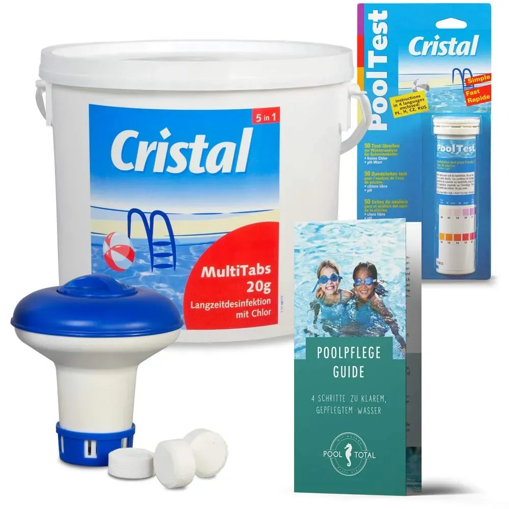 Verfügbarkeit: Auf Lager - Kategorie: Poolzubehör - POOL Total - GTIN:4251002859394 - KOMPLETTSET FüR IHREN POOL: Enthält 5 kg Multitabs Chlor Cristal und einen praktischen Chlordosierer €“ alles für eine einfache und effektive Wasserpflege. 5-IN-1-WIRKUNG: Die Multitabs bieten Desinfektion, Algenverhütung und Flockung in einem Produkt €“ für hygienisches und klares Wasser. LANGSAM LöSLICH FüR DAUERHAFTEN SCHUTZ: Die Multitabs geben das Chlor gleichmäßig und über einen längeren Zeitraum ab, was den Pflegeaufwand reduziert. BENUTZERFREUNDLICHER CHLORDOSIERER: Der mitgelieferte Dosierer sorgt für eine gleichmäßige Verteilung der Multitabs im Poolwasser €“ ideal für Pools jeder Größe. FüR ALLE POOLTYPEN GEEIGNET: Perfekt für private Pools, Whirlpools und Schwimmbecken €“ wirksam bei jeder Wasserhärte und leicht anzuwenden. SICHERHEITSHINWEIS: Biozidprodukte vorsichtig verwenden. Vor Gebrauch stets Etikett und Produktinformationen lesen. BAuA Reg. Nr.: N-94851. Bewahren Sie das Produkt außerhalb der Reichweite von Kindern auf. - 47,95 Euro bei Amazon Marketplace Lawn & Garden - gefunden von billiger.de Dieses 5 kg Set mit Dosierschwimmer und Teststreifen ist ein umfassendes Paket für die komplette Poolwasserpflege. ![]() ![]() POOL Total Cristal Multitabs Chlor Set - 5kg Eimer mit Dosierschwimmer & Teststreifen - 5-in-1 Wasserpflege für Pools - Langzeitdesinfektion & Algenverhütung