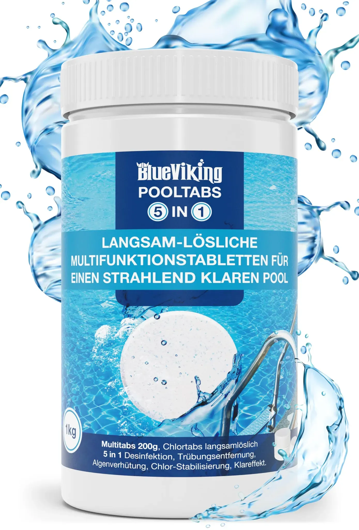 Verfügbarkeit: Auf Lager - Kategorie: Poolzubehör - blueviking - GTIN:4262360810194 - 💦 Deine Traumhafte Relax-Time - Tauch ein ins kristallklare Wasser. Mit dem 1kg Eimer 200g 5 in 1 Pool Chlortabletten hast du die Poolhygiene perfekt im Griff. Frei von Borsäure & Kupfersulfat. Unsere langzeit Chlortabletten für Deinen Pool. 💦 5 in 1 Chlor Multitabs - Clever, Praktisch & Hochwirksam: Pool Tabletten 5 in 1 - vom Algizid, Flockungsmittel, Chlor-Stabilisierer, Dauer-Desinfektionsmittel (Bakterizid) bis hin zum ph-Regulierer. 💦 Sichere Premium Qualität - Made In Europe: Wir setzen auf eine absolut hochwertige Produktion in Europa - es entstehen Pooltabs mit sehr hohem, mind. 86%, Aktivchlor-Anteil. Chlor wird langsam und gleichmäßig abgegeben. Clortabellten Pool 5 in 1. 💦 Super Einfach & Bequem In der Anwendung: Dank der praktischen Tablettenform hast du bei den Pool Multitabs alles dabei - 1 Pool Tab pro 2m3 in den Skimmer geben und dann die Filteranlage einschalten, so können sich die Tabletten langsam auflösen. 💦 Nicht zufrieden? Dann schwimm€™ doch flink in unseren Mails vorbei! Bei uns badest du nicht in ungeklärten Fragen. Wir sind für dich direkt als Ansprechpartner erreichbar & stehen dir mit Rat und Tat zur Seite - deutschsprachig und kompetent.Achtung: Biozidprodukte vorsichtig verwenden. Vor Gebrauch stets Etikett und Produktinformationen lesen. -BAuA: N-106206 - 13,49 Euro bei Amazon Marketplace Lawn & Garden - ... Diese BAYROL Chlortabletten sind eine bewährte Marke und bieten 5 Funktionen in einem Produkt für eine umfassende Poolpflege. ![]() ![]() BAYROL e-Chlorilong® POWER 5 - 1kg - Chlortabletten für Pool - Multitabs 200g mit 5 Funktionen für Desinfektion Algenverhütung Flockung Kalkvermeidung & Chlorstabilisierung - Chlor Pool
