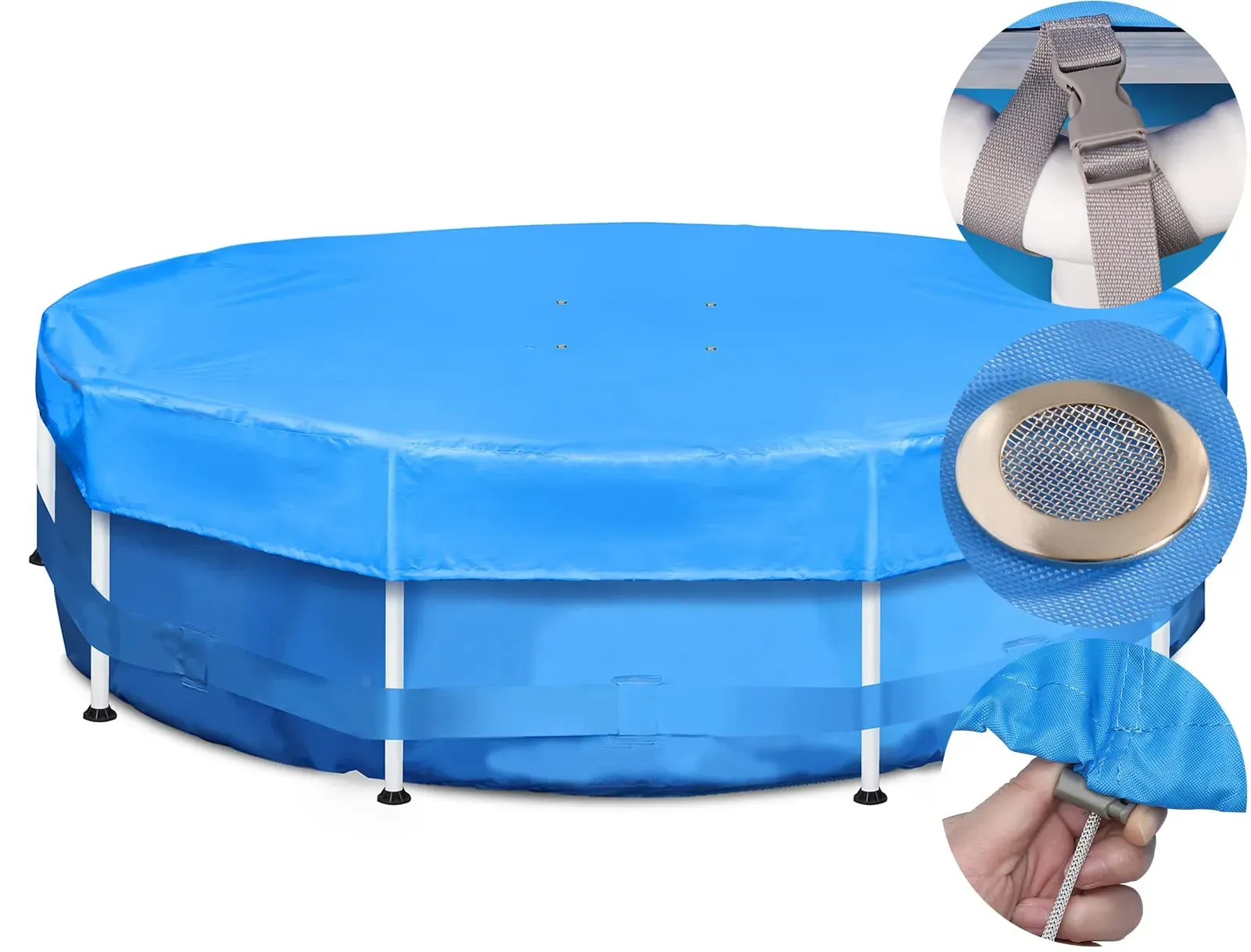 Verfügbarkeit: Auf Lager - Kategorie: Poolzubehör - Aipwerer - GTIN:0765504392524 - œ ÂBREITE ANWENDUNG: Diese Abdeckplane rund aus 420D Oxford-Gewebe ist für rund Pools mit einem Durchmesser von 320 bis 366 cm geeignet, insbesondere für die Marken INTEX und BESTWAY. Sie passt genau über den Poolrahmen und schützt sowohl das Wasser als auch den Rahmen vor äußeren Einflüssen œ ÂHOCHWERTIGES UND HALTBARES MATERIAL: Die Konstruktion der Pool abdeckung besteht aus 420D Oxford-Gewebe, das mit einer wasserdichten und staubdichten Beschichtung versehen ist mit wasserdichten Klebestreifen versehen, um eine ausgezeichnete wasserbeständigkeit zu gewährleisten. Dieses material ist robust und widerstandsfähig gegen rauen Außenbedingungen, Risse und Einstiche, die Lebensdauer der pool verlängert œ ÂSOMMER & WINTER POOLPLANE: Pool plane ist stabil und passt sich dank der Bänder perfekt an den Pool an. Die Poolplane hält Laub, Staub und Schmutz wirksam ab und reduziert zudem die Wasserverdunstung sowie den Wasser- und Chlorverbrauch. Im Sommer dient sie als Solarplane, die dazu beiträgt, die Wassertemperatur angenehm zu halten, während sie im Winter als Schutzplane fungiert, um Schmutz und Laub fernzuhalten œ ÂLEICHT ANBRINGEN UND WIEDER ENTFERNEN: Plane ist stabil und passt sich dank der Bänder perfekt an den Pool an. Enthält 371 x 30 cm poolabdeckung, aufbewahrungstasche, zeltpflöcke und seill für StabilitäT und Einfache Installation, lässt sich auch ruck ... Diese Sekey Poolabdeckung bietet mit verstellbaren Schnallen und Klettverschlüssen eine sichere Befestigung und ist wind- und staubdicht. ![]() ![]() Sekey Poolabdeckung Rund 366 cm ? Passend für Runde Stahlrahmenbecken | Verstellbare Schnallen & Klettverschlüssen | Wind- & Staubdicht | Reißfestes Hochdichtes Abdeckplane | Schwarz