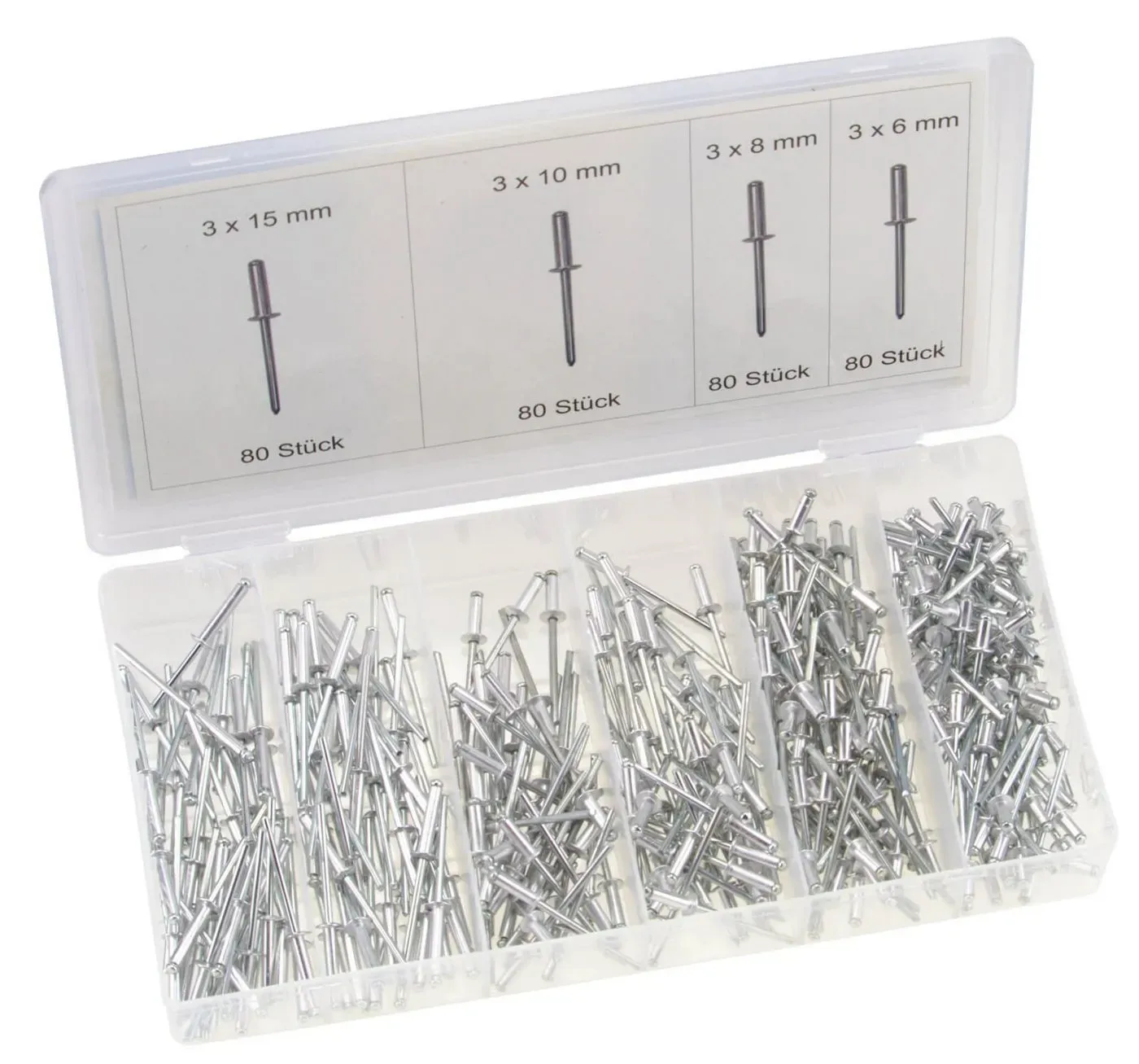 lieferbar-in 2-3 Werktagen bei dirCMC Blindniete Blindnieten Popnieten Nieten Sortiment 320 teilig silberfarben