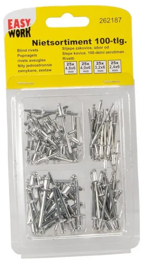 lieferbar-in 2-3 Werktagen bei dirEASYWORK Easy Work Blindniete 100 Blindnieten Popnieten Nieten Set Nietensortiment Sortiment silberfarben