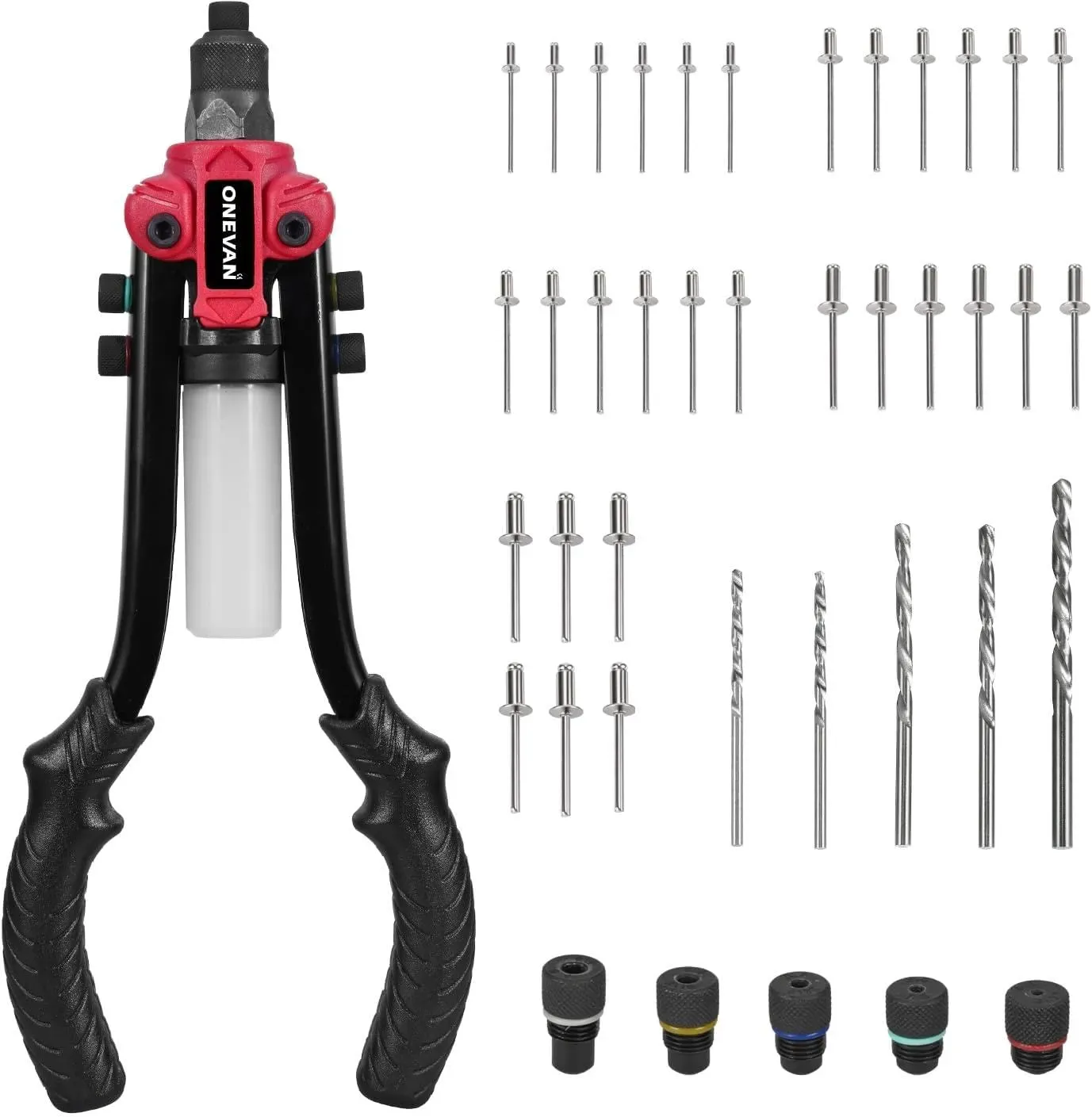 Auf Lager Versand durch AmazonLibraton Popnietenzange Set, Nietzange Set, Blindnietenzange mit 80-tlg Blindnieten und 4-tlg HSS-Bohrer, Professionelles Nietwerkzeug für Automobil, Eisenbahn, Möbel, Instrument