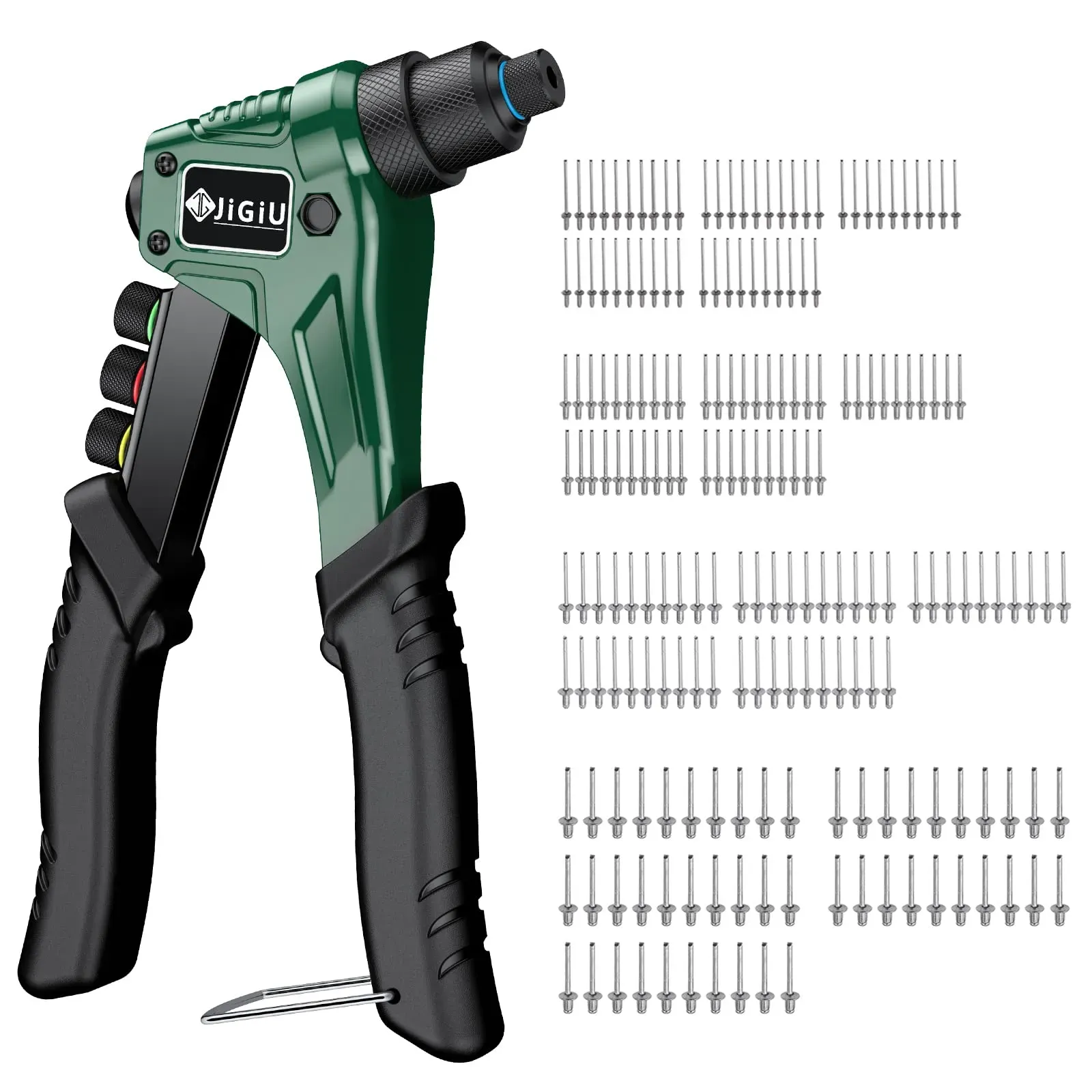 Zustand: Neu - Nietzangen - LIBRATON - 900913 - EAN: 0630808009136 - 4-GRÖSSEN-NietKOPFLibraton popnietenzange set ist mit 4 austauschbaren Köpfen ausgestattet, um eine Vielzahl von Nietarbeiten zu ermöglichen: 2,4 mm (3/32'), 3,2 mm (1/8'), 4,0 mm (5/32') und 4,8 mm (3/16'), Aluminiumnietpaket (insgesamt 80 Stück), Bohrer der Größe 4 und tragbarer Schraubenschlüssel, um die Bedienung bequemer und effizienter zu gestalten. BONUS 4 GRÖSSENBOHRER4 kompatible HSS-Bohrer 2,4 mm (3/32'), 3,2 mm (1/8'), 4,0 mm (5/32') und 4,8 mm (3/16') sind enthalten das Paket zur Effizienz Ihres Bohrprozesses. Sie müssen sie nicht separat erwerben. PREMIUM-HALTBARKEIT UND LEBENSDAUER2-mm-blindnietenzange aus Kohlenstoffstahl mit hochharter Elektroplattennase sorgen für Rostschutz, erstklassige Haltbarkeit und Lebensdauer. Die dicken PVC-Griffe bieten dem Benutzer Komfort, der rutschfeste Griff erleichtert die Arbeit und verbessert die Arbeitseffizienz des Benutzers. BREITE ANWENDUNGDas nietzangen eignet sich perfekt zum sicheren Befestigen von Metall und schwerem Stoff in verschiedenen Konstruktions- und Reparaturanwendungen und kann für Automobil-, HLK-, Luftfahrt-, Rasenmöbel-, Eisenbahn-, Aufzugs-, Instrumenten-, Möbel- usw. verwendet werden. Hinweis Und WartungVermeiden Sie Situationen, in denen der Niet festsitzt: Der Niet muss die gleiche Größe wie die Düse haben, und der Niet kann sich bei unsachgemäßer Verwendung im Nietwerkzeug verfangen. Wenn Sie Fragen haben, zögern Sie bitte ... Das JiGiU Nietzange Set ist ein beliebtes Modell mit 200 Nieten und ergonomischem Griff für komfortables Arbeiten. ![]() ![]() JiGiU Nietzange Set, Blindnietzange inkl. 200pcs Nieten 2,4/3,2/4,0/4,8mm Austauschbaren Mundstücke 8" Popnietenzange mit Ergonomischer Griff Professional Nietpistole