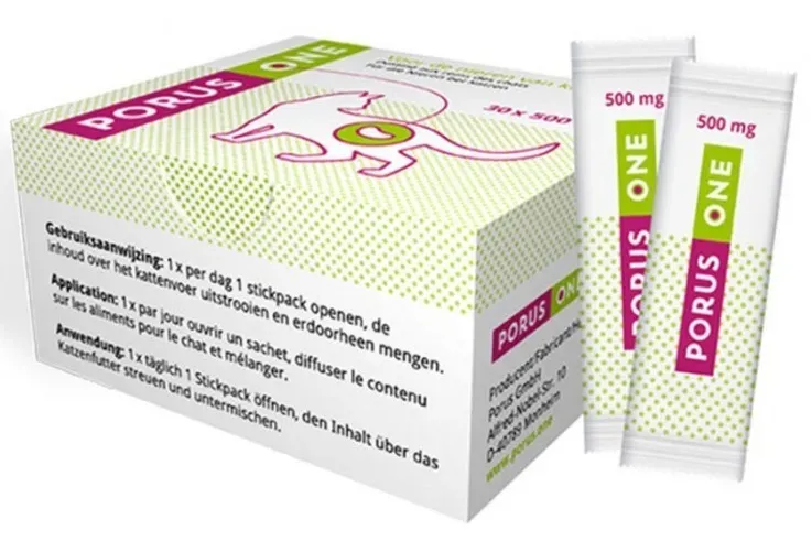 2986,00 /kg - Kategorie: Tiergesundheit - Dechra - GTIN:4260570270111 - PZN:19745441 - Ergänzungsfuttermittel für Katze Porus One Porus One unterstützt die Bindung von urämischen Vorstufen (Indol, p-Kresol) bereits im Darm und dient der Unterstützung der Nierenfunktion von Katzen. Fütterungsempfehlung: 1 Stickpack (500 mg) pro Katze und Tag. Angebrochene Stickpacks sind sofort aufzubrauchen. Gewicht der Katze (kg) Tägliche Futtermenge (g) 2 - 3 kg 30 - 40 g 4 - 5 kg 55 - 70 g 6 - 7 kg 85 - 100 g Verpackungsgröße: 30 x 500 mg Hersteller: Dechra Veterinary Products - 44,79 Euro bei Shop Apotheke DE - gefunden von billiger.de Ein weiteres Einzelpack von eBay, das eine gute Option für den regelmäßigen Bedarf ist. ![]() ![]() Porus One - 30x500 mg eBay für die Nieren der Katze | Toxine