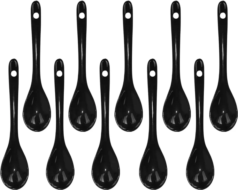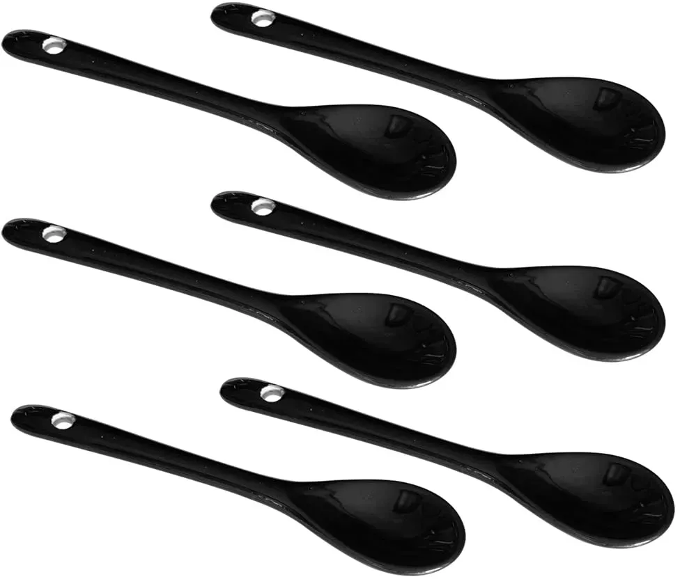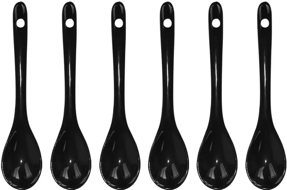 Auf LagerLotatheta 6 schwarze Porzellan-Eierlöffel, Keramiklöffel, 11,9 cm, Kaffee, Dessert, Joghurt, Tee, Milchtee