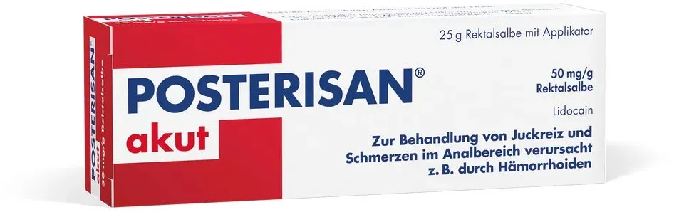 381,60 /kg - Kategorie: Arzneimittel - Dr. Kade - GTIN:4150049578643 - PZN:04957864 - Posterisan akut Salbe 25 g - rezeptfrei - von DR. KADE Pharmazeutische Fabrik GmbH - Salbe - 25 g - 9,54 Euro bei DocMorris Apotheke - gefunden von billiger.de Dies ist ein preisgünstiges Angebot für die Posterisan akut Salbe in einer kleineren Packungsgröße, ideal zum Ausprobieren. ![]() Juvalis.de Posterisan akut bei Hämorrhoiden 50mg/g Rektalsalbe