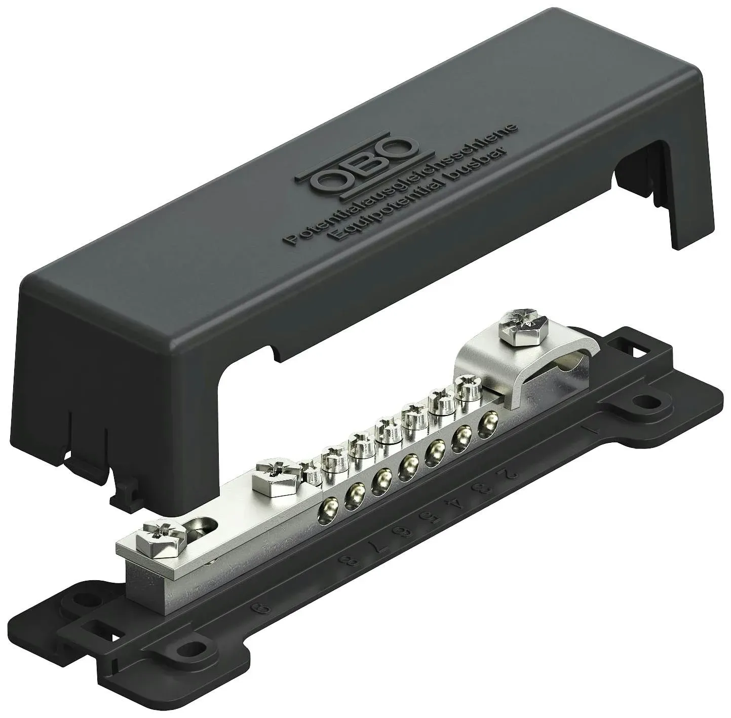 Befestigungstechnik Sonstige - EAN:4013364101234 - Eigenschaften: Potentialausgleichsschiene nach DIN EN 62561-1, für den Schutz- und Funktionspotentialausgleich nach DIN VDE 0100-410/540 (Haupterdungsschiene) und den Blitzschutz-Potentialausgleich nach DIN EN 62305-3 (VDE 0185-305-3) Ausführung UV-stabilisiert, geprüft nach DIN VDE 0618-1, mit CE-Zeichen, Aufsteckklemmen St/gal Zn, Befestigungsböcke und Abdeckhaube aus Kunststoff, schwarz (halogenfrei), Abdeckung plombierbar und beschriftbar. (563201) - gefunden von Kelkoo Die OBO Bettermann BigBar/5 ist eine robuste Schiene mit 5 Anschlüssen, die für anspruchsvollere Anwendungen geeignet ist. ![]() ![]() OBO Bettermann Potentialausgleichsschiene BigBar/5 Anschl. 1802 5 VA