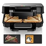 Zustand: Neu - Waffeleisen - Syntrox Germany Lestix International GmbH - Waffeleisen Kitchen-Chef-ZN-2000W-Resto-CCM - EAN: 4068368047361 - 🔥 Vielseitige Funktionen: Das Kombi-Gerät XXL bietet die ideale Lösung für verschiedene Kochbedürfnisse mit seinen Wechselplatten für Grillen, Waffeln und Sandwiches. Erleben Sie professionelle Vielseitigkeit in Ihrer Küche. 💨 Hohe Leistung: Mit 2000W Power sorgt das Gerät für schnelles und gleichmäßiges Erhitzen, wodurch Ihre Speisen perfekt gegart werden. Ideal für schnelle und effiziente Mahlzeiten. 🥪 Wechselplatten-System: Dank des praktischen Wechselplatten-Systems können Sie die Platten schnell und einfach wechseln. Die Platten sind antihaftbeschichtet und leicht zu reinigen. 🔧 Einfache Handhabung: Der ergonomische Griff und die intuitive Steuerung ermöglichen eine mühelose Bedienung. Stellen Sie die Temperatur präzise ein und genießen Sie eine einfache Zubereitung. 🌟 Robuste Bauqualität: Das Gerät ist aus hochwertigen Materialien gefertigt, die für eine lange Lebensdauer und hohe Strapazierfähigkeit sorgen. Eine Investition, die sich lohnt. - Verkäufer: Elektro Schnellversand im amazon.de Marketplace ![]() ![]() Arendo - Sandwichmaker 3 in 1 - mit Wechselplatten - Kontaktgrill ? Waffeleisen ? Sandwichmakler XXL - Antihaftbeschichtung ? für Sandwiches, belgische Waffeln, Grillgut uvm - klein und kompakt