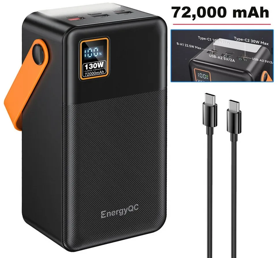 lieferbar-in 3-4 Werktagen bei dirpoweradd pro Power Bank 50,000 mAh: PD 3.0 65W USB-C Externer Akku, Powerbank 50000 mAh, mit 2 input and 4 outputs, für iPhone, Samsung, iPad etc