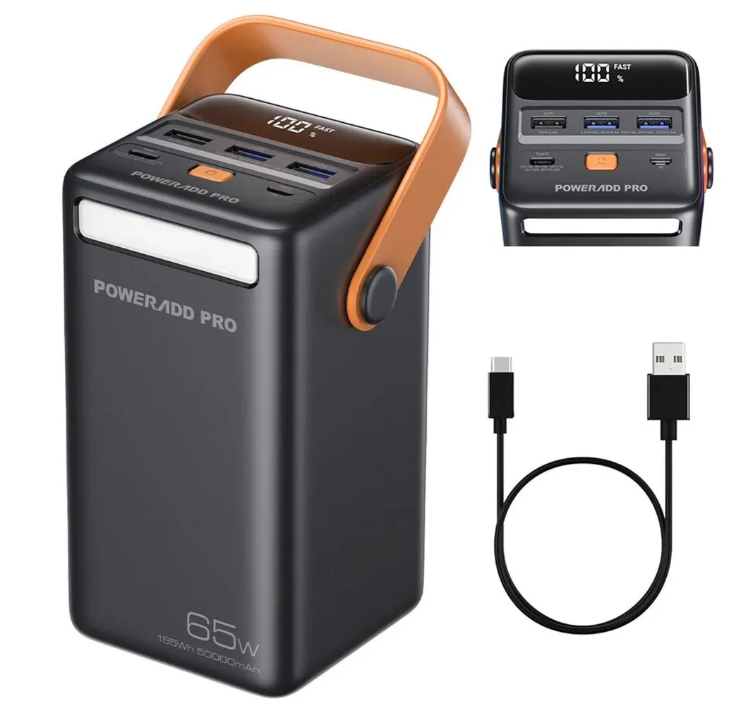Gewöhnlich versandfertig in 2 bis 3 Tagenpoweradd pro Power Bank 50000mAh PD 65W USB C mit LED Display Schnellladung Externer Akku für Laptop MacBook Handy Samsung Google LG Drohne usw. Schwarz