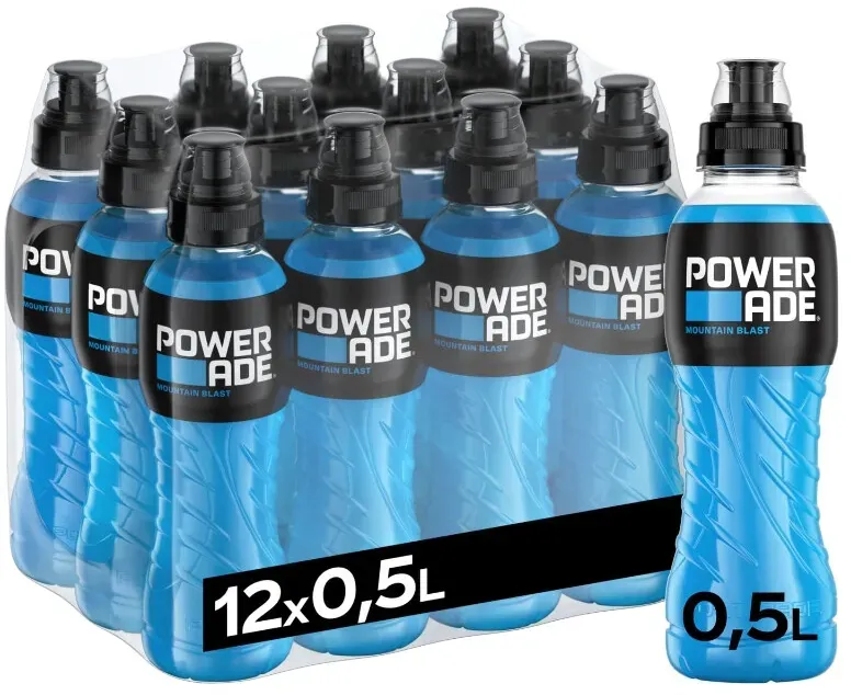Zustand: Neu - 1,99 € / kg - Regenerationsgetränke - Powerade Coca-Cola Europacific Partners - - EAN: 5449000029829 EAN: 5449000029850 - Isotonisches Elektrolytegetränk mit Fruchtmixgeschmack und Vitamin B6 Für einen ausgeglichenen Wasserhaushalt Mit Elektrolyten, isotonisch und kalorienarm Lieferumfang: 6x1000ml Powerade Drink Mountain Blast - bei Amazon.de Ein attraktives Angebot für einen 12er-Pack Powerade Mountain Blast zu einem sehr guten Preis. ![]() ![]() POWERADE Mountain Blast 12x0.5L