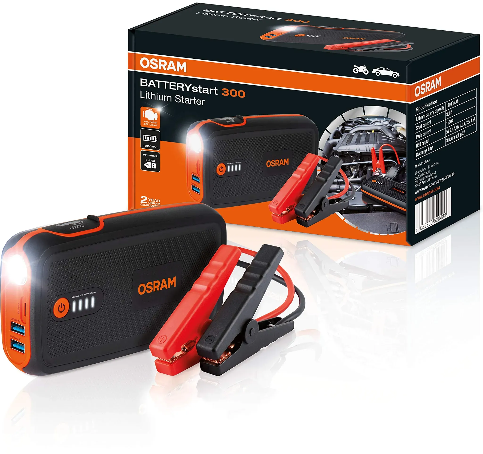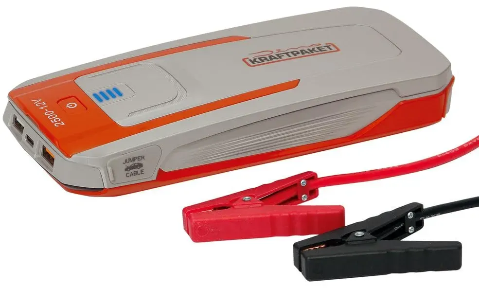 Verfügbarkeit: Auf Lager - Kategorie: Sonstiges Autozubehör - Offgridtec - GTIN:4262440569516 - ALLES IN EINEM €“ MULTIFUNKTIONALES WUNDER: Mit diesem 3-in-1-Multitool haben Sie eine Reifenpumpe, KFZ-Starthilfe und Powerbank in einem kompakten Gerät. Entwickelt, um in jeder Situation zu helfen, sei es bei Pannen, Outdoor-Abenteuern oder täglichem Gebrauch. LEISTUNGSSTARKE REIFENPUMPE MIT PRäZISION: Mühelos Reifen von Autos, Motorrädern oder Fahrrädern sowie Sportbälle aufpumpen. Mit 4 anpassbaren Modi, einem Druckbereich von bis zu 10,35 bar und automatischem Stopp, sobald der gewünschte Wert erreicht ist. ZUVERLäSSIGE KFZ-STARTHILFE FüR NOTFäLLE: Mit einem Spitzenstrom von 800A starten Sie Ihr Fahrzeug sofort, auch bei kaltem Wetter oder leeren Batterien. Ein Muss für jede Autoreise €“ nie wieder gestrandet sein! SMARTES LED-DISPLAY & NOTFALL-SOS-LICHT: Das LED-Display zeigt Druck, Batteriestatus und Modi in Echtzeit an, während die SOS-Lampe Sie nachts sichtbar macht. Perfekt für Notfälle oder dunkle Umgebungen. LEISTUNGSSTARKER AKKU €“ MOBILITäT NEU DEFINIERT: Die integrierte 8800mAh-Powerbank mit Schnellladefunktion (PD20W) lädt Smartphones, Tablets und mehr. Kompakt und leicht, ideal für unterwegs oder als praktischer Helfer in jeder Situation. - 73,19 Euro bei Amazon Marketplace Automotive - gefunden von billiger.de Die OSRAM BATTERYstart 300 ist eine leistungsstarke Option für größere Motoren (bis 6L Benzin & 3L Diesel) und bietet die gewohnte Qualität einer bekannten Marke. ![]() ![]() OSRAM BATTERYstart 300, KFZ Starthilfe, Lithium Batteriestarter 1500A 12V für Motorrad & PKW mit Powerbank Funktion für bis zu 6L Benzin & 3L Dieselmotoren
