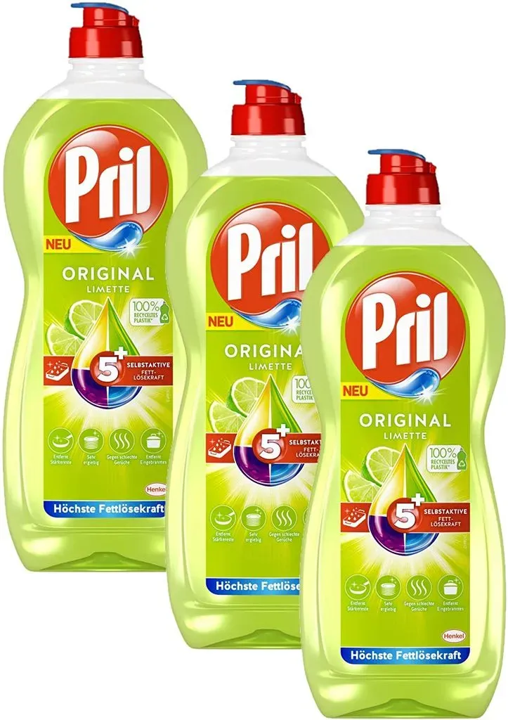 3,25 / 1,0 l - Kategorie: Reinigungsmittel - Pril - GTIN:4015200035598 - Das Fresh Lemon Spülmittel Kraft-Gel von Pril verwandelt das Geschirrspülen in eine mühelose Tätigkeit. Mit seiner konzentrierten Formel können selbst Fett und eingetrocknete Speisereste im Handumdrehen entfernt werden. Die praktische Verschlusskappe sorgt dafür, dass jede Dosierung genau und einfach gelingt, sodass kein Tropfen verschwendet wird. Dank der innovativen Kalt-Aktiv-Formel kann das Geschirr auch bei kaltem Wasser strahlend sauber gereinigt werden. Dieses Spülmittel ist nicht nur ein Helfer im Haushalt, sondern ein wahrer Küchenheld, der für blitzblanke Ergebnisse sorgt und die Freude am Kochen und Genießen zurückbringt. - 1,95 Euro bei dm.de - gefunden von billiger.de Mit dem Pril Geschirrspülmittel »Original Limette« erhalten Sie einen Klassiker mit erfrischendem Duft zu einem sehr attraktiven Preis. ![]() Pril Geschirrspülmittel »Original Limette« 675 ml