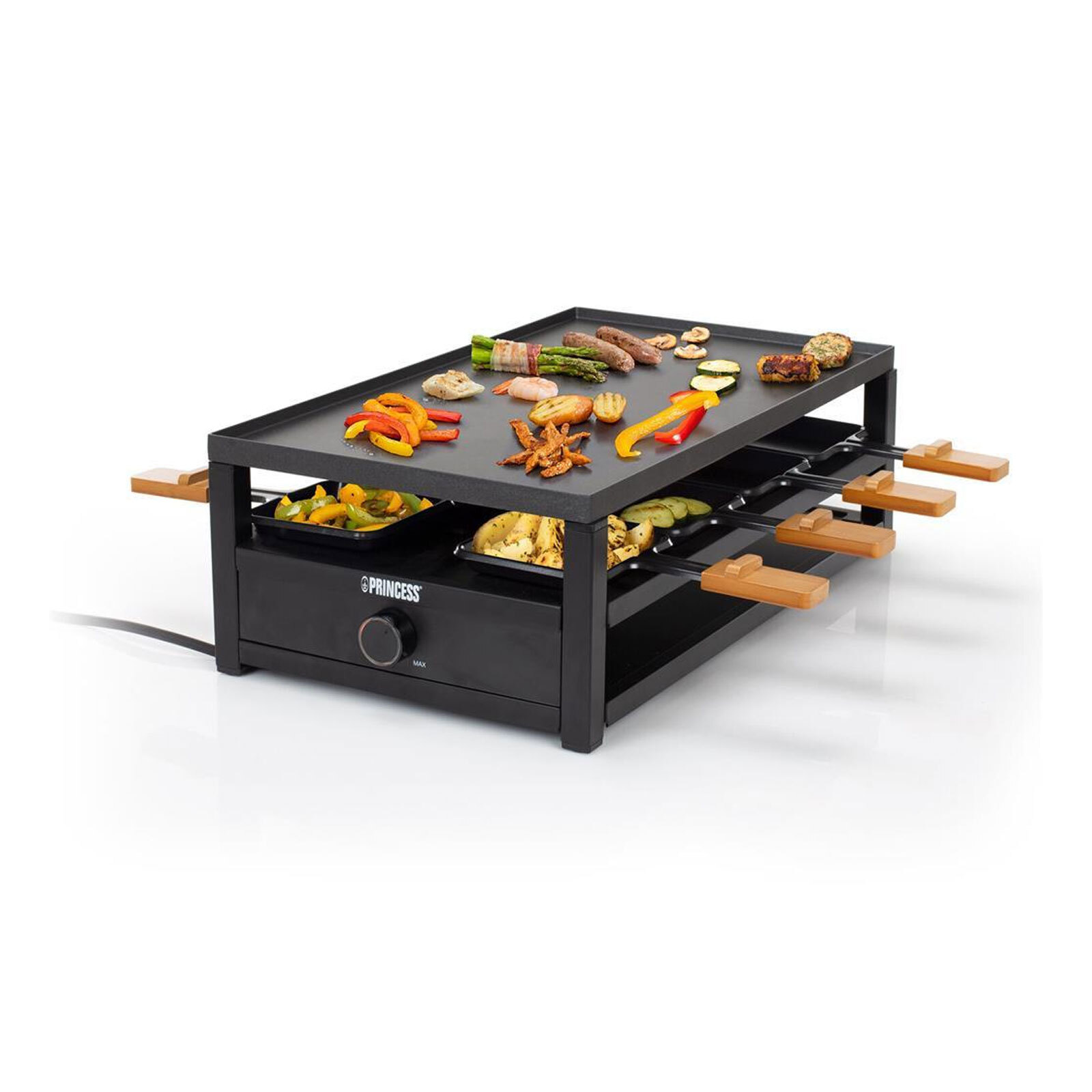 Zustand: Neu - Raclettes - Princess - 162655 - EAN: 8712836973978 - Das Raclette hat ein 1,5 Meter langes Stromkabel Mit Abstellfläche zum Abstellen der Raclette-Pfännchen bei Nichtgebrauch Inklustive 8 Holzspatel - Verkäufer: Amazon im amazon.de Marketplace ![]() kaufland.d e Princess Raclette Black Steel ? 8 Personen Parkdeck Pfännchen große Kochfläche 01.162655.01.001