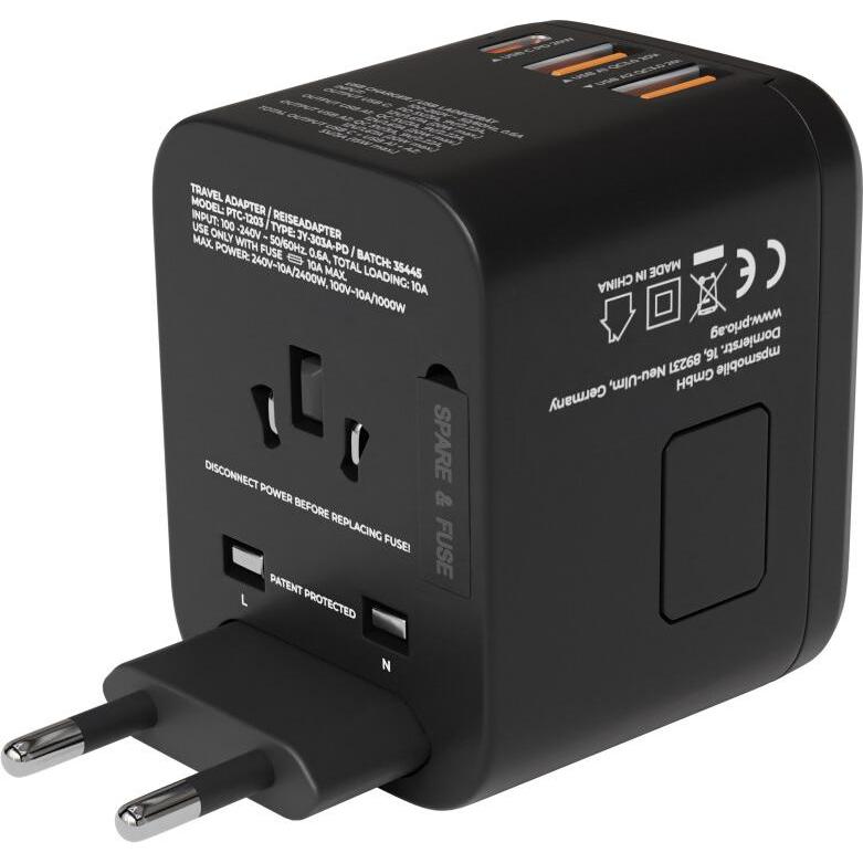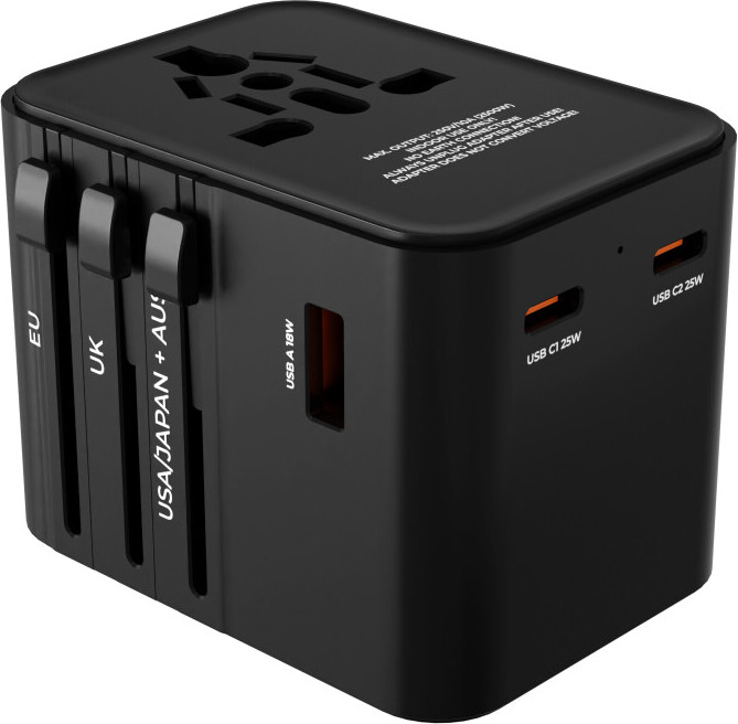 prio - EAN: 4067397035691 - Leistungsstarker und kompakter Reiseadapter mit USB-C und zwei USB-A-Ports, einschliesslich einer Reisetasche. Weltweite Kompatibilität: Funktioniert in über 220 Ländern und auf allen Kontinenten, einschliesslich Afrika, Nordamerika, Südamerika, Asien, Europa und Australien. 2-in-1-Lösung: Verwenden Sie unseren Adapter mit jedem 2-poligen Stecker ohne Erdung, um Ihr Mobiltelefon, Tablet, Rasierer, Videokamera oder Laptop aufzuladen, während gleichzeitig zwei USB-Geräte mit bis zu 3A geladen werden. Sicher und kompakt: Die eingebaute, austauschbare Sicherung (10A) sorgt für eine sichere Nutzung weltweit. Das kompakte Design und die enthaltene Reisetasche machen den Transport einfach. Universelle Anschlüsse: Die USB-C- und zwei USB-A-Ports bieten 100% Kompatibilität mit allen mobilen Geräten. Produktmerkmale: Eingang: 100-240V, ~50/60Hz, 0.6A Max Ausgang USB-C (PD 3.0): 5V/3A (15W), 9V/2.22A (20W), 12V/1.67A (20W) Ausgang USB A1/USB A2 (QC 3.0): 5V/3A (15W), 9V/2A (18W), 12V/1.67A (20W) Gesamtausgang USB-C + USB A1 + USB A2: 15W (5V/3A) Unterstützte Ladeprotokolle USB-C (PD 3.0): PD 3.0/2.0, QC 3.0/2.0, AFC, SCP, DCP, Apple 2.4A Unterstützte Ladeprotokolle USB A1/USB A2 (QC 3.0): QC 3.0/2.0, AFC, DCP, Apple 2.4A Abmessungen: 53 x 55 x 68 mm Gewicht: 141 g. - bei galaxus.de - aus Yadore Produktdaten ![]() ![]() MyTravelPal Pro - Worldwide Reiseadapter eBay USB-C Universalstecker Ladegerät geerdet