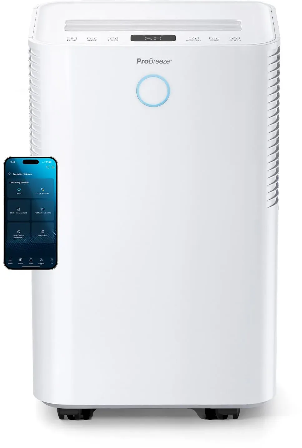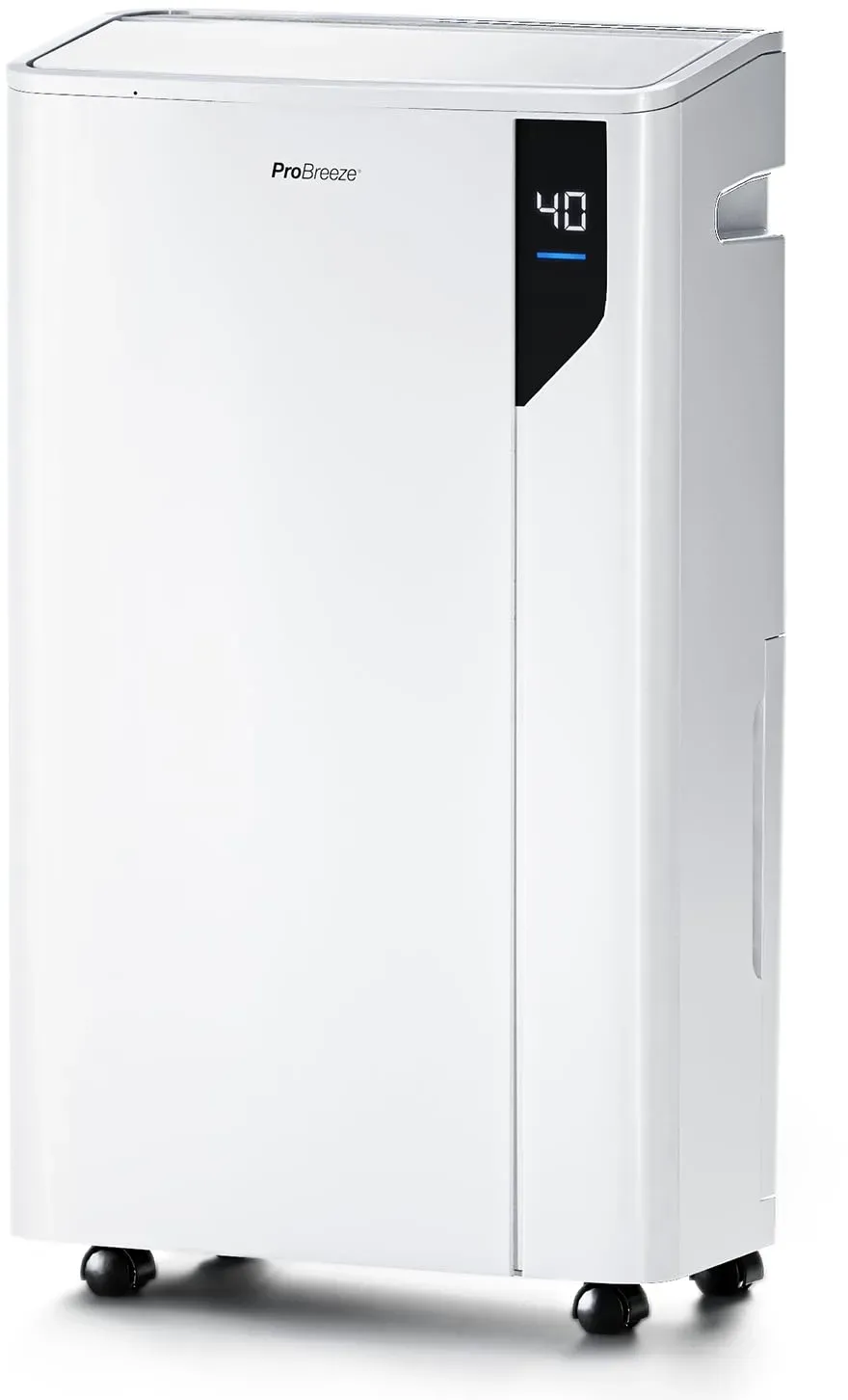 Kategorie: Luftentfeuchter - Pro Breeze - GTIN:5060596025301 - Energieeffizienter Entfeuchter: Der leistungsstarke Pro Breeze Luftentfeuchter entfernt effizient bis zu 20 Liter Wasser pro Tag bei Betriebskosten von weinger als 10 Cent pro Stunde & reduziert so Ihre Energiekosten. Er wird mit einem leicht-zu-reinigenden Luftfilter geliefert - ideal für die Bekämpfung von Feuchtigkeit, Schimmel, Kondensation und Nässe in Wohnungen bis zu 30m2. Großer 4L Wassertank: Der 4L Wassertank sammelt bis zu 20L Wasser pro Tag. Wenn der Wassertank voll ist, schaltet sich der Luftentfeuchter automatisch ab. Ein mitgelieferter Abwasserschlauch bietet kontinuierlichen Betrieb. Smarte App & WLAN: Verwenden Sie die kostenlose Pro Breeze Smart App oder nutzen Sie Sprachbefehle, um alle Funktionen des intelligenten 20L Luftentfeuchter bequem von Ihrem Bett oder Sofa aus zu steuern. Kompatibel mit Amazon Alexa und Google Home für iPhone und Android. Fortschrittlicher Wäschemodus: Der Pro Breeze Luftentfeuchter ist einer der fortschrittlichsten Luftentfeuchter für den Hausgebrauch. Er verfügt über einen effizienten Luftkompressor und einen Wäschetrocknungsmodus, mit dem Sie Ihre Wäsche schneller trocknen können, ohne die Heizung anzustellen oder einen teuren Trockner zu benutzen. Besonders Leise & Kompakt: Mit einem Geräuschpegel von nur 36dB ist dieser Raum Entfeuchter leise genug für eine Bibliothek - perfekt für Ihr Heimbüro oder Kinderzimmer. Darüber hinaus ist dieser relativ kleine ... Dieser leistungsstarke 30L/24h Luftentfeuchter mit WLAN und App-Steuerung ist ideal für sehr große Räume und bietet maximalen Komfort. ![]() ![]() Pro Breeze Luftentfeuchter 30L in 24h Entfeuchtungsleistung - Elektrischer Luftentfeuchter mit WLAN & App - Feuchtigkeitssensor, 4L Wassertank, Timer, Ablaufschlauch - Gegen Feuchtigkeit, Schimmel