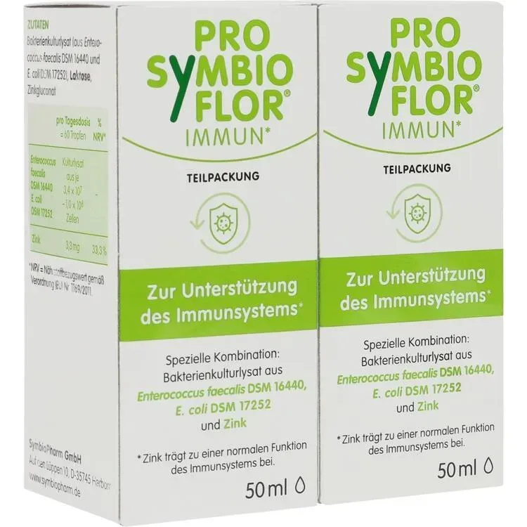 Verfügbarkeit: 1-2 Werktage - 272,00 €/l - Kategorie: Nahrungsergänzungsmittel - Klinge Pharma - GTIN:4260298010457 - PZN:18358920 - Pro-symbioflor Immun mit Bakterienkultur 100 ml - rezeptfrei - von Klinge Pharma GmbH - Tropfen zum Einnehmen - 100 ml - 27,20 Euro bei DocMorris Apotheke - gefunden von billiger.de Shop Apotheke DE bietet ein 2x50 ml Multipack für 27.33 Euro an, was eine kostengünstige Option für eine längere Anwendung ist. ![]() ![]() Klinge Pharma Pro-Symbioflor Immun mit Bakterienkulturen & Zink 2x50 ml Tropfen zum Einnehmen