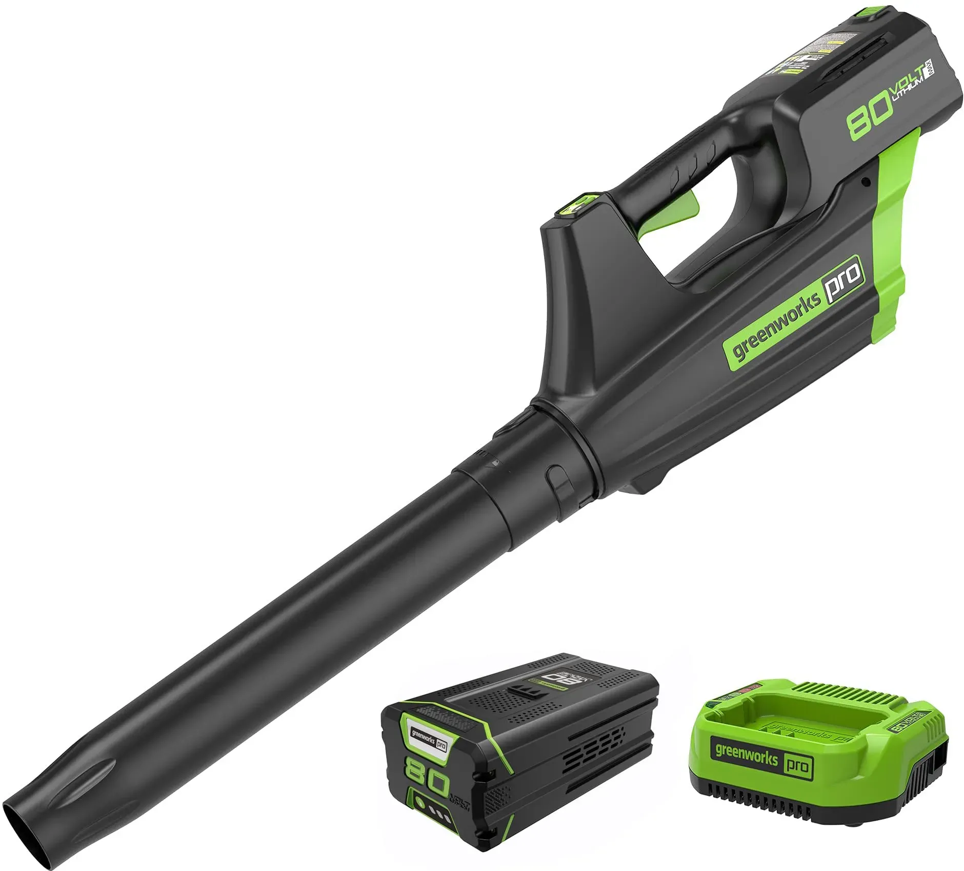 Gewöhnlich versandfertig in 2 bis 3 TagenGreenworks Pro 80 V Axial-Gebläse, bürstenloser Motor, Luftgeschwindigkeit 210 km/h, Luftvolumen 850 m3/h, Gewicht 2,5 kg (mit 4Ah Akku und Ladegerät)