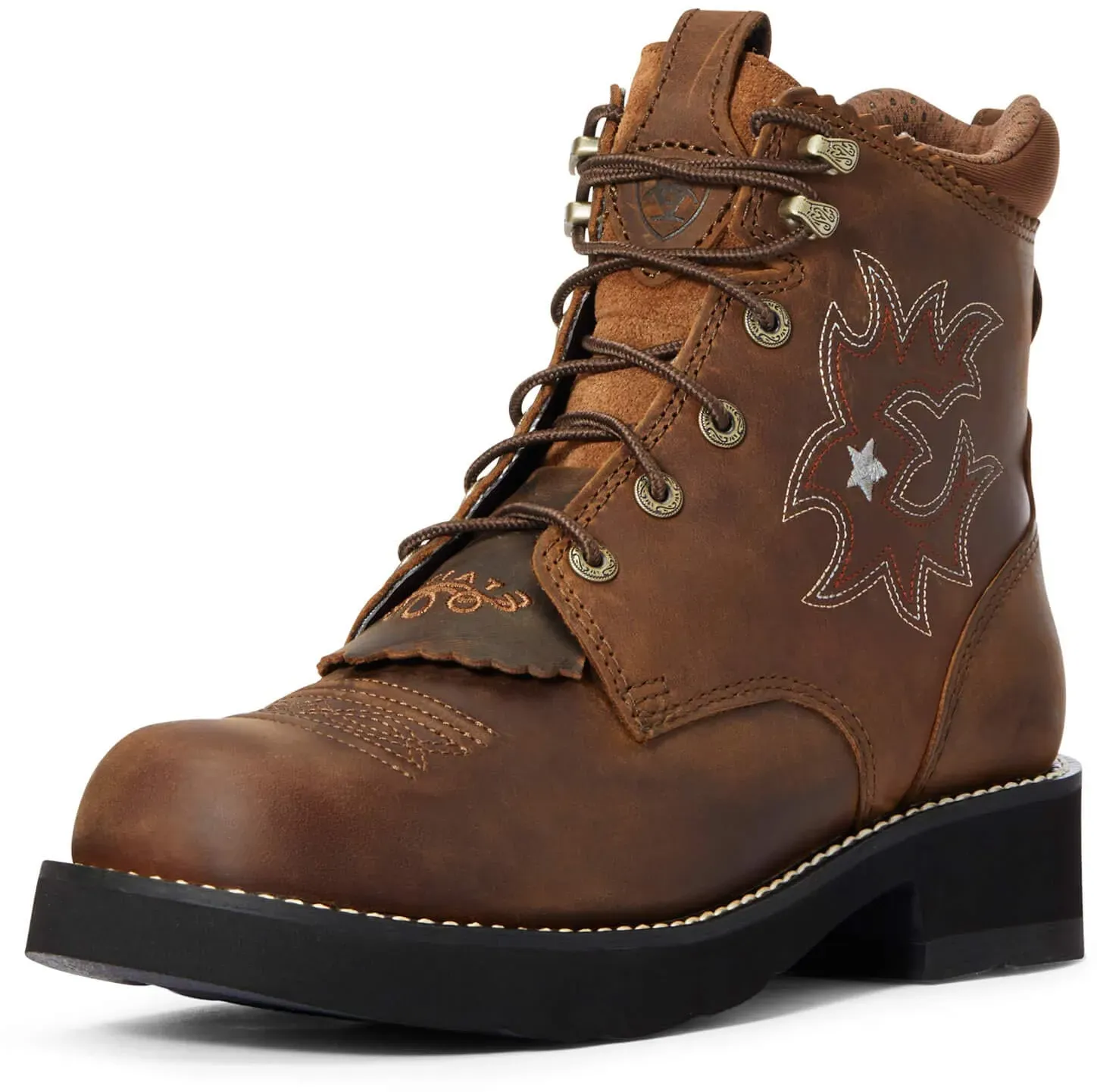 2 Händlerangebote bei billiger.de - Kategorie: Stiefeletten - Ariat - Der Probaby Lacer erinnert an einen traditionellen Westernstiefel und ist sowohl für die Arbeit im Stall als auch zum Reiten geeignet. Mit seiner Krepp-Laufsohle Pro und dem Duratread-Absatz ist er für den Steigbügel geeignet, während die ATS-Technologie für Komfort sorgt. Dieser robuste Stiefel aus Vollnarbenleder hat eine abnehmbare Klatsche, drei Reihen von Ziernähten und einen gestickten Stern für noch mehr Stil. - GTIN:0751702688927 ![]() ![]() Ariat 1090 - PROBABY LACER eBay Brown Damen Westernreitstiefel Lederstiefel Braun