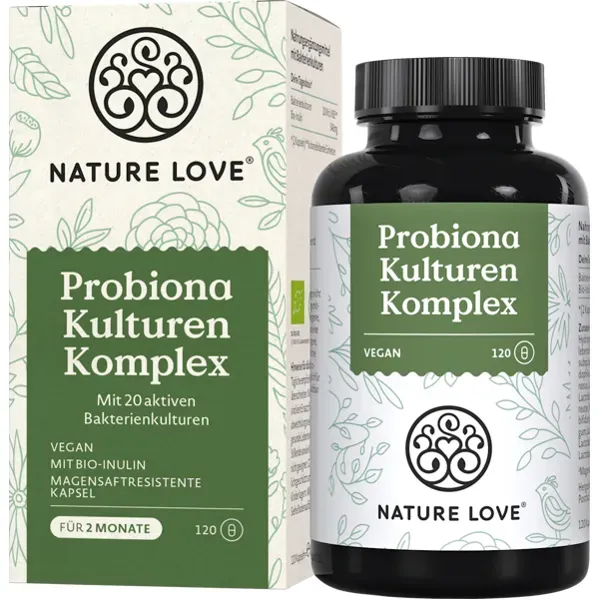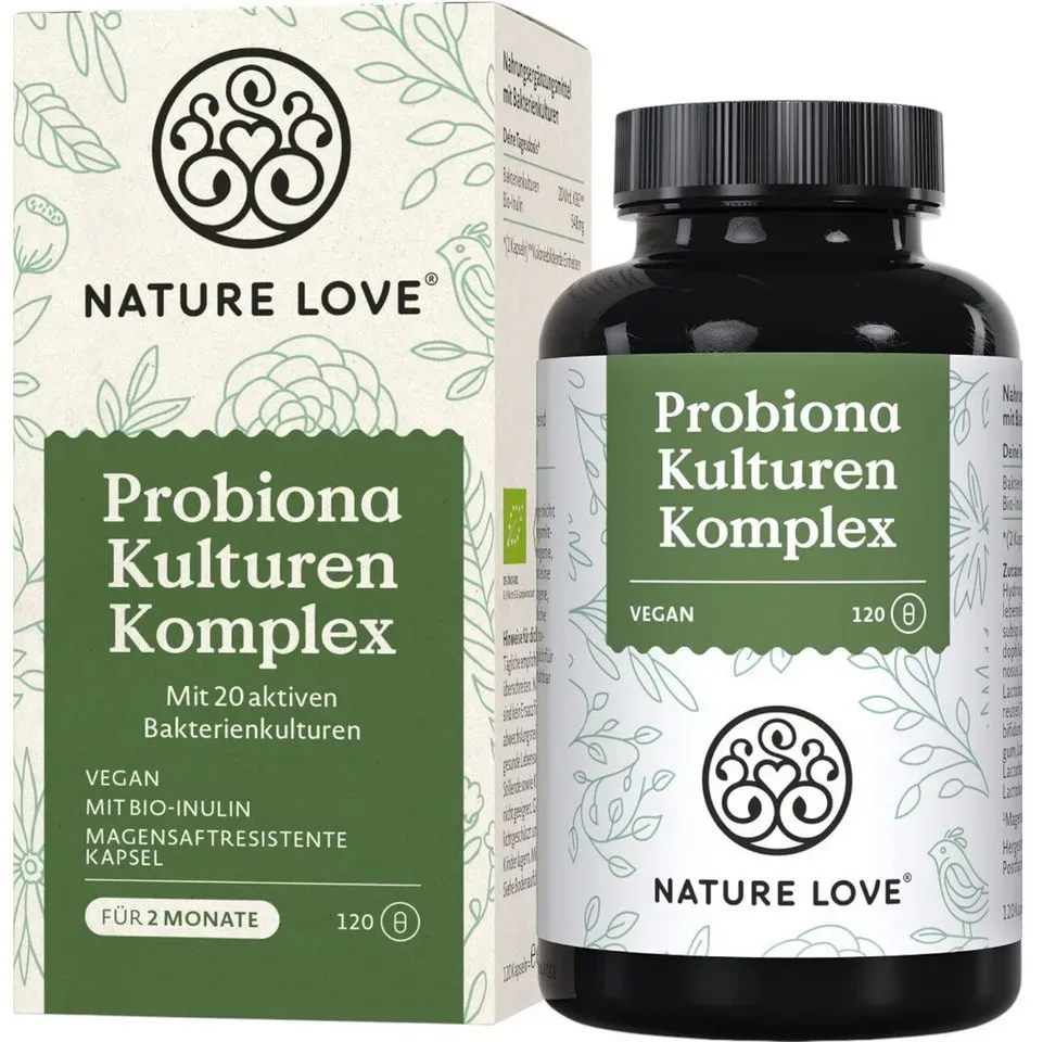 Zustand: Neu - 97,56 € / kg - Lactobacillus Probiotika Lactobacillus - Horbäach Horbaach - HI46382 - EAN: 5056370307640 - 22 MILLIARDEN KBE: Fortschrittliche multibiotische Formel mit 22 Milliarden KBE lebender Bakterien pro Tagesdosis. Formuliert mit Präbiotikum - 100 mg Inulin zur weiteren Verbesserung der Formel. PROBIOTISCHE STÄMME: Enthält eine Kombination aus Lactobacillus Crispatus, Lactobacillus Gasseri, Lactobacillus Acidophilus und Lactobacillus Reuteri, sorgfältig ausgewählt für eine vielfältige Mischung. INULIN: Eine Art löslicher Ballaststoffe, die in vielen Pflanzen vorkommt. GEEIGNET FÜR: Horbaach Multibiotic & Prebiotic Kapseln zum Einnehmen sind für Vegetarier und Veganer geeignet und enthalten keine künstlichen Farb-, Geschmacks- oder Konservierungsstoffe. Es ist die perfekte Formel für erwachsene Männer und Frauen zum besten Preis-Leistungs-Verhältnis. Die Verpackung kann variieren: Wir sind dabei, unsere Verpackung zu aktualisieren. Sollte das Produkt, das Sie erhalten, anders aussehen, können Sie sicher sein, dass die Vorteile gleich bleiben. Wenn Ihr Produkt außerdem auf Englisch etikettiert ist, finden Sie zur Vereinfachung ein abziehbares Etikett mit sechs weiteren Sprachen. - Verkäufer: Horbaach im amazon.de Marketplace ![]() ![]() NATURE LOVE Probiona Kulturen Komplex