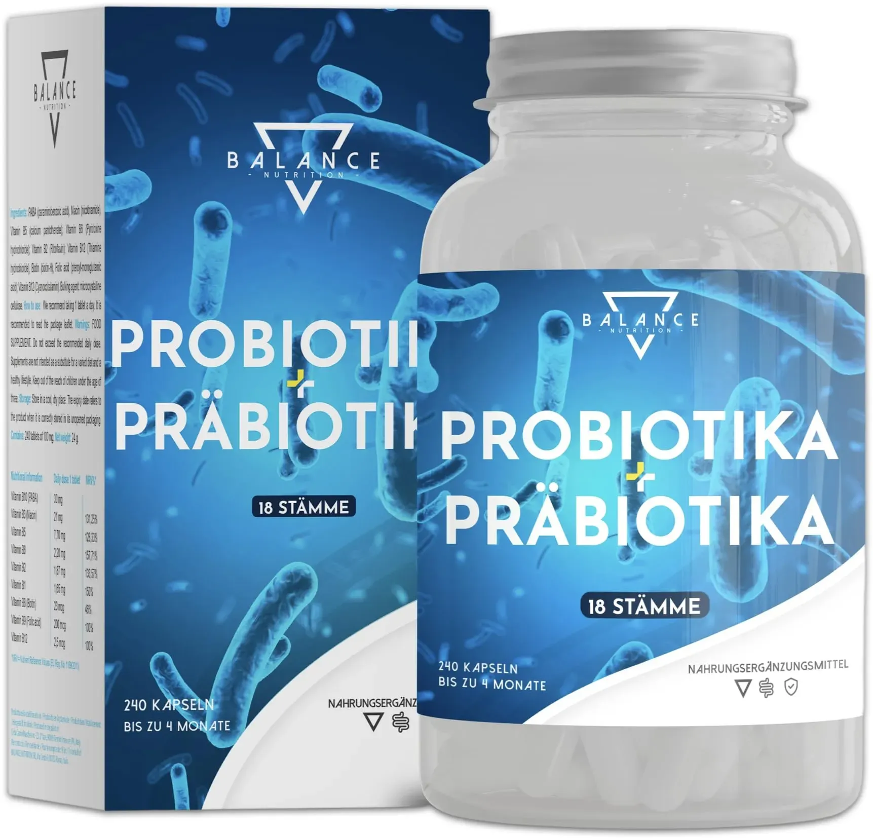 Zustand: Neu - 349,83 € / kg - Lactobacillus Probiotika Lactobacillus - BALANCE NUTRITION Balance Nutrition Srl - ITPROB240-46 - EAN: 8057271901446 - 🔠UMFASSENDE KOMPLEXFORMEL MIT 18 PROBIOTISCHEN STÄMMEN: Balance Nutrition kombiniert 18 sorgfältig ausgewählte Stämme von Milchsäurebakterien, darunter Lactobacillus, Bifidobacterium und Acidophilus, in einer Tagesdosis von bis zu 20 Milliarden KBE. Diese Vielfalt an Stämmen macht das Produkt zu einer breit angelegten Formulierung, die auf wissenschaftlich geprüften Kulturen basiert. 🌱 PRÄBIOTIKA, ENZYMKOMPLEX UND PFLANZLICHE EXTRAKTE IN EINEM PRODUKT: Neben den probiotischen Kulturen enthält die Rezeptur die Präbiotika Inulin und FOS, die in Fachkreisen als Substrate für Milchsäurebakterien geschätzt werden. Ergänzt wird die Formel durch Enzi-Mix, eine Mischung aus Amylase, Protease, Glucoamylase, Lipase, Cellulase, Laktase und Pektinase, sowie Bambus- und Kamillenextrakte. So entsteht ein Produkt mit einem besonderen Zusammenspiel an Komponenten. 💯 LANGZEITVERSORGUNG - 240 KAPSELN FÜR BIS ZU 4 MONATE: Mit 240 Kapseln pro Verpackung bietet Balance Nutrition eine großzügige Menge, die eine Versorgung für bis zu 4 Monate ermöglicht - ideal für alle, die Wert auf Kontinuität und Versorgungssicherheit legen. 👉 PRAKTISCHE ANWENDUNG IM ALLTAG: Die Kapseln sind einfach einzunehmen und lassen sich bequem in die tägliche Routine integrieren. Durch die klare Dosierungsempfehlung ist die Anwendung unkompliziert und ... ![]() ![]() balance nutrition PROBIOTIKA UND PRäBIOTIKA - 240 KAPSELN | Probiotika Kapseln | Probiona Kulturen Komplex Kapseln | Präbiotika, Verdauungsenzyme + Inulin | Flora Aufbau | Bis zu 20 Mrd KbE