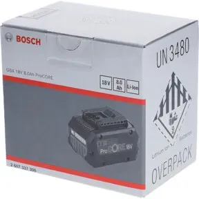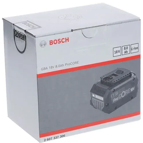 Kategorie: Zubehör für Elektrowerkzeug - Bosch - GTIN:3165140952958 - Der ProCORE18V 8.0Ah ist für alle alltäglichen Arbeiten hilfreich - für bis zu 1.600 Watt kabelgebundener Energie. Dank neuster Zellentechnologie und intelligentem Akkumanagement von Bosch bietet er dem Nutzer 87% mehr Leistung als ein konventioneller Akku. Die COOLPACK 2.0-Technologie vermeidet ein überhitzen des Akkus und verlängert die Lebensdauer um 135%. Die ProCORE18V Serie ist Bestandteil des Flexible Power Systems und somit mit dem kompletten gewerblichen 18 Volt-System von Bosch kompatibel. - 109,13 Euro bei voelkner - gefunden von billiger.de Ein weiterer günstiger Einzelakku, der eine gute Option für den Einstieg oder als Ergänzung darstellt. ![]() ![]() Bosch Batterie GBA 18V 8 Ah ProCore