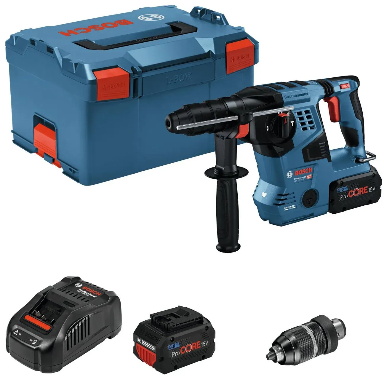 keine Angabe Sofort lieferbar, 2-3 Werktage in_stockBosch Professional Bosch Akku-Bohrhammer gbh 18V-26 f mit 2x ProCORE 18V 8,0 Ah + Lader in l-boxx