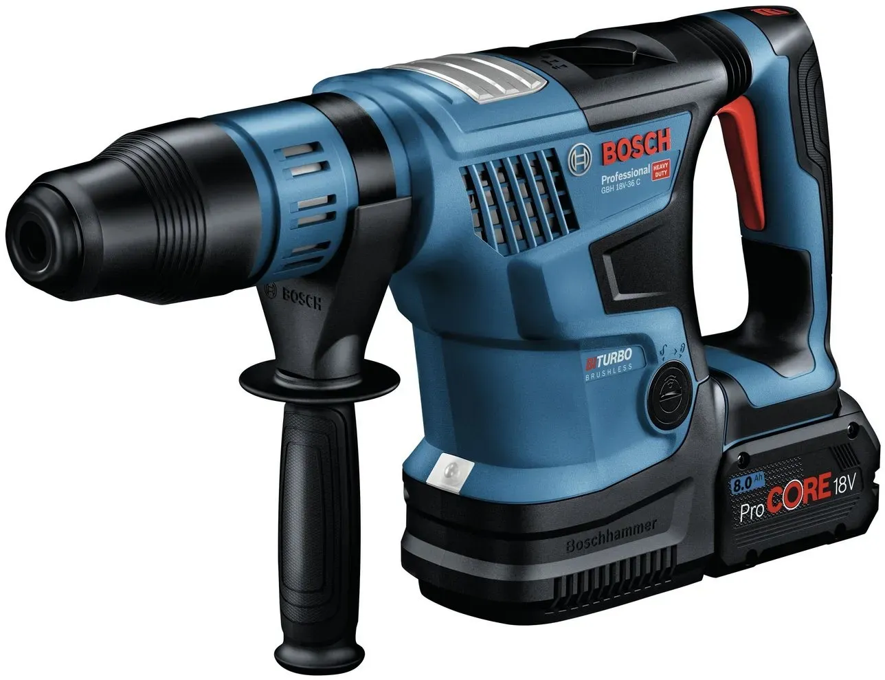 lieferbar-in 3-4 Werktagen bei dirBosch Professional Akku-Kombibohrhammer GBH 18V-36 C, 18 V, max. 500 U/min, Bohrhammer BITURBO m. SDS max m. 2x Akku ProCORE 8 Ah - im
