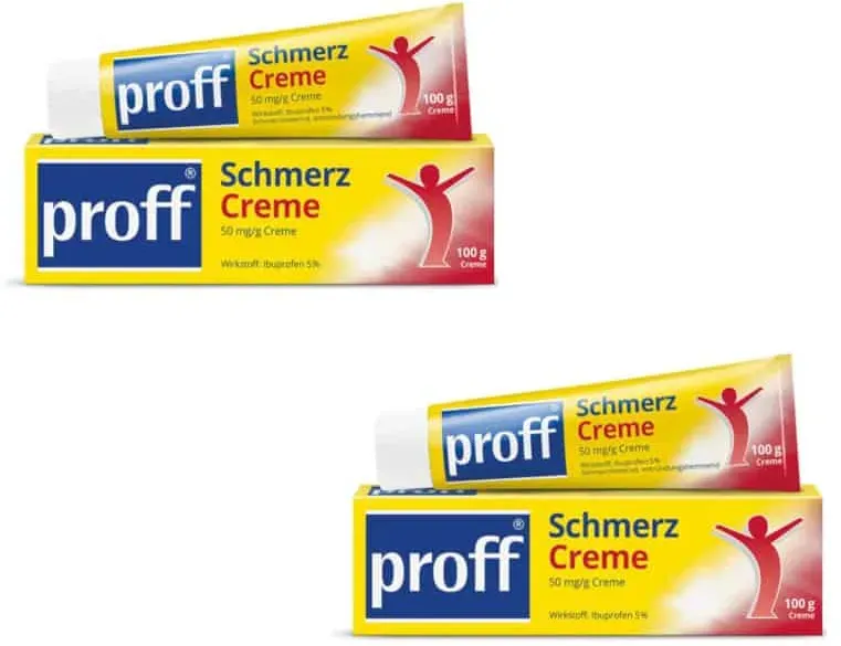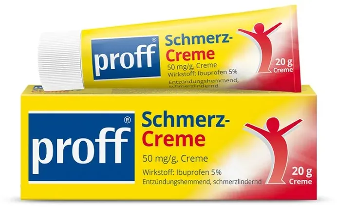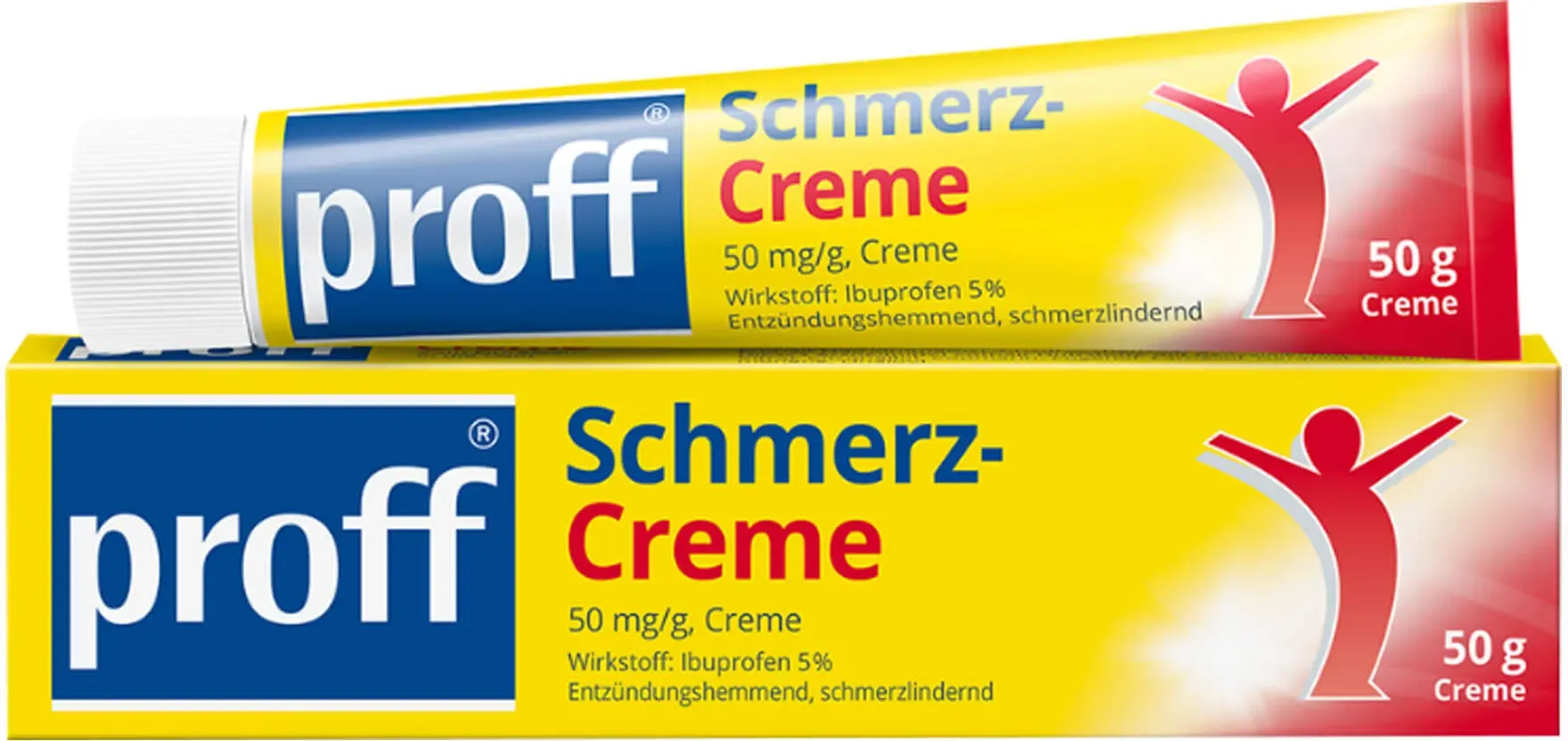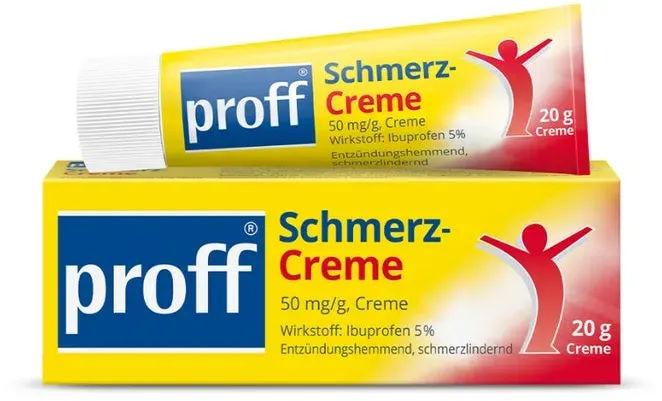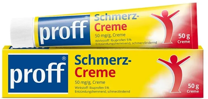13 Händlerangebote bei billiger.de - Kategorie: Arzneimittel - proff - Anwendungsgebiet von Proff Schmerz-Creme 50mg/g Proff Schmerz-Creme 50mg/g Seit 1983 in Deutschland zugelassen Schmerzen in Muskeln oder Gelenken können den Alltag stark einschränken. Proff Schmerz-Creme 50mg/g wird äußerlich angewendet und wirkt lokal am betroffenen Bereich.Bereits seit 1983 in Deutschland zugelassen, zählt Proff Schmerz-Creme 50mg/g zu den ersten topischen Arzneimitteln mit dem Wirkstoff Ibuprofen. Die Entwicklung basierte auf einem europäischen Patent zur Herstellung einer Ibuprofen-Creme für die äußerliche Anwendung, das 1982 eingereicht wurde. Heute ist Proff Schmerz-Creme 50mg/g rezeptfrei, aber apothekenpflichtig erhältlich.Die Creme wird auf die Haut aufgetragen, leicht eingerieben und lässt sich gut verteilen. Dank der äußerlichen Anwendung wird der Wirkstoff am betroffenen Bereich aufgenommen mit nur geringer systemischer Belastung.Die Formulierung wurde speziell für die äußerliche Anwendung entwickelt und ist in der Regel gut hautverträglich auch bei wiederholter Anwendung.Bei starken Blutergüssen und Stauchungen kann zu Beginn der Behandlung die Anwendung eines luftdichten Verbandes von Nutzen sein.Ein verstärktes Eindringen des Wirkstoffs durch die Haut kann außerdem durch Anwendung der Iontophorese (eine besondere Form der Elektrotherapie) erreicht werden.Wirkstoffe / Inhaltsstoffe / ZutatenProff Schmerz-Creme 50mg/g enthält:Zusammensetzung:1 g proff Schmerzcreme enthält 50 ... Für nur 3.99 Euro erhalten Sie hier eine 20g Packung, die gut für den gelegentlichen Gebrauch ist. ![]() ![]() PROFF Schmerzcreme 50 mg/g 20 g