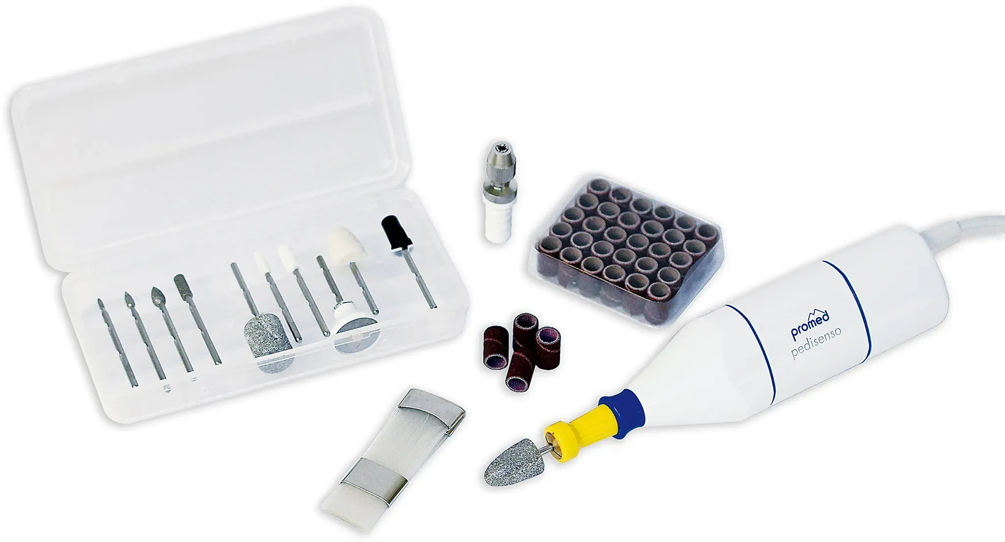 3 Händlerangebote bei billiger.de - Kategorie: Nagelpflege - Promed - Mit 2 Spannzangen: für Diabetiker (Sicherheitsstopp) und für Normalgebrauch inkl. 44-teiligem Zubehör Haut- und Nagelpflege auch in Problembereichen. Spitzenqualität in Form und Funktion 'Diabetiker-Spannzange mit automatischem Sicherheitsstopp, für verletzungsfreies Arbeiten bei zu starkem Andruck Stufenlose Drehzahlregulierung bis 4.000 U/min Made in Germany - GTIN:4043641130190 - PZN:05483457 ![]() ![]()