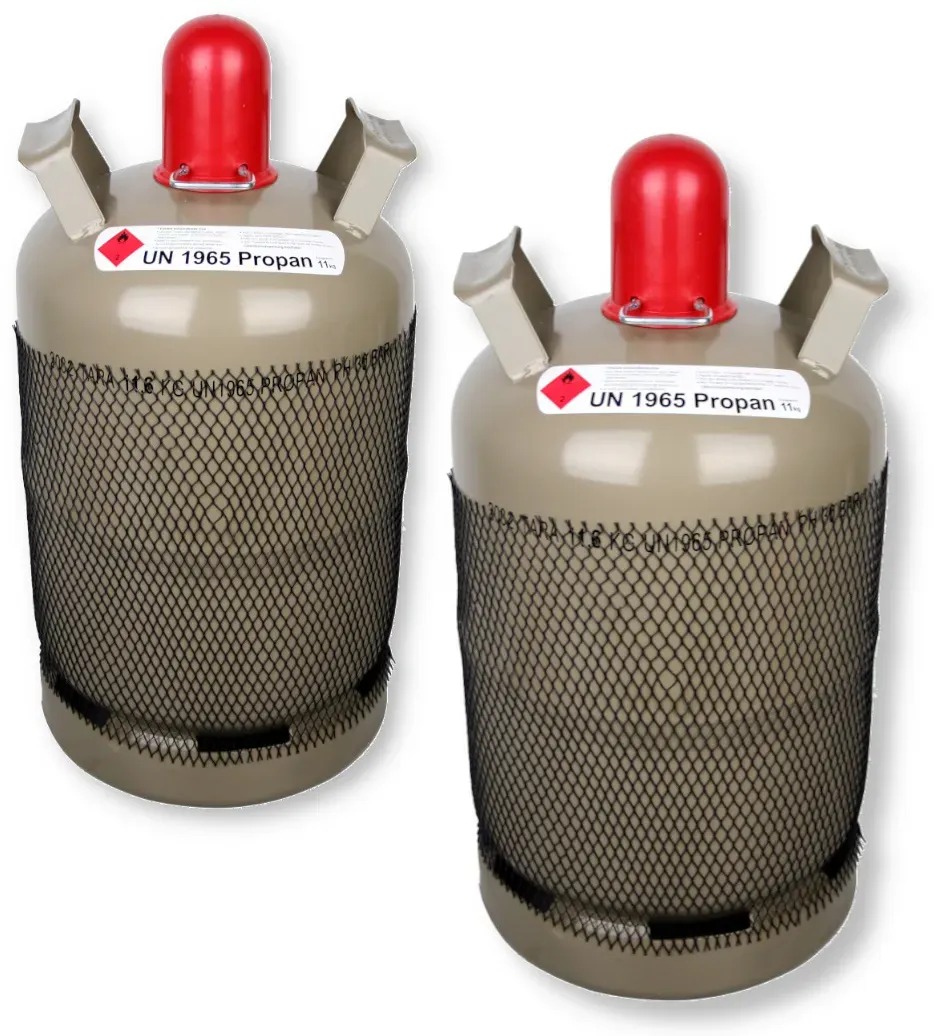Kategorie: Grillzubehör - Gazcamp - GTIN:4041431036578 - 2x 11 kg Propangasflasche Grau Eigentumsflasche leer/ungefüllt Mit unserer leeren Propan-Gasflasche 11 kg sind Sie Eigentümer dieser Flasche und können diese für Ihren Einsatz im Haushalt, beim Camping oder für Ihren Outdoor-Gasgrill füllen lassen. Wir liefern Ihnen die Gasflasche inkl. Sicherheitsventil und roter Schutzkappe. Produktdetails: - Flasche: neue 11 kg Eigentumsflasche - Farbe: olivgrau RAL 7002 - Gewicht: ca. 11 kg - Maße: 30/ 60 cm (Durchmesser/ Höhe) - Füllmenge: circa 24 l Die Gasflasche ist für mindestens TüV geprüft! Leere Eigentumsflaschen können Sie an fast jeder Tankstelle, Baumarkt, Agrarhandel oder Campingplatz auffüllen lassen. Lieferumfang: 2x 11 kg Propan-Gasflasche Grau Eigentumsflasche leer/ungefüllt 2x rote Schutzkappe 2x Verschlusskappe mit Lasche ... - 61,98 Euro bei gasfritzen.de - gefunden von billiger.de Dieses Set mit einer 11 kg Propangasflasche und Füllstandsanzeiger bietet Komfort und Sicherheit für größere Anwendungen. ![]() ![]() GOK Füllstandsanzeiger Senso4s BASIC + 11kg Propangasflasche (leer)